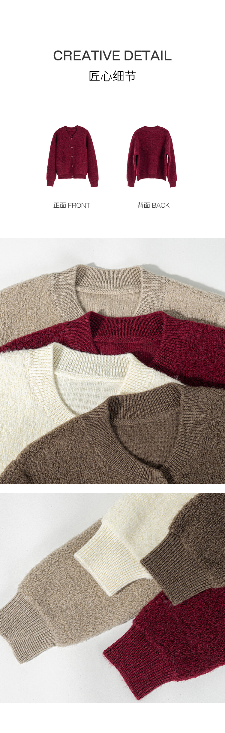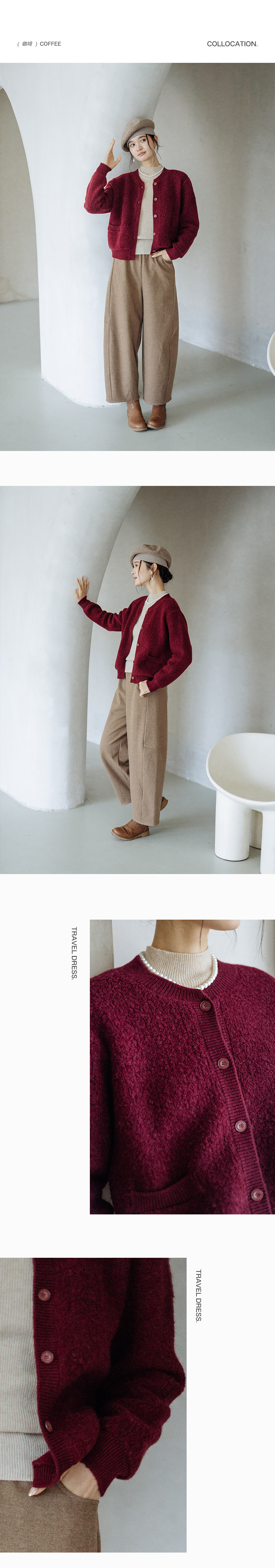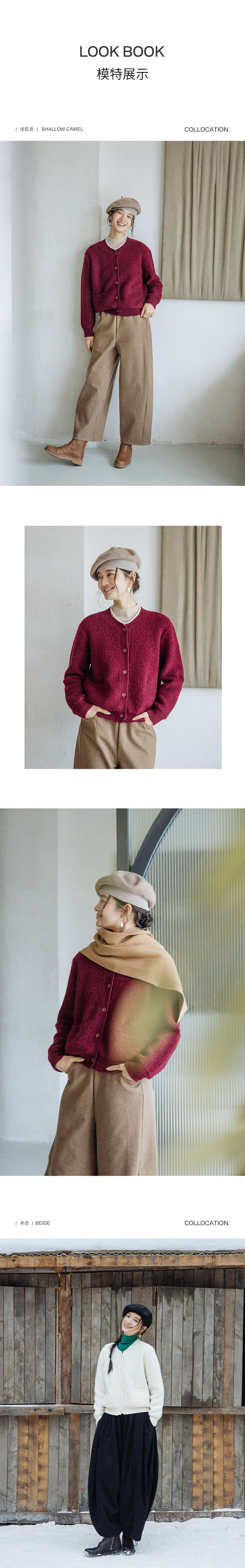 绽放旅行女装894朵/简爱毛衣100%绵羊毛四色绒感短款开襟毛针织衫