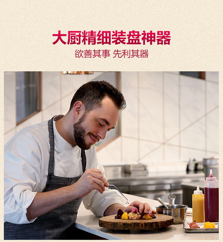 创意菜镊子 职业大厨镊子 米其林同款造型镊子-创意出品六件套-米其林酱汁画勺+造型镊子+装盘铲刀