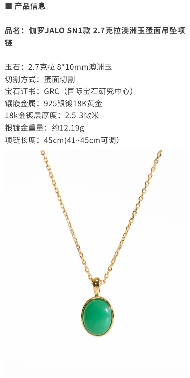 伽罗 JALO SN1款 2.7克拉澳洲玉蛋面吊坠项链