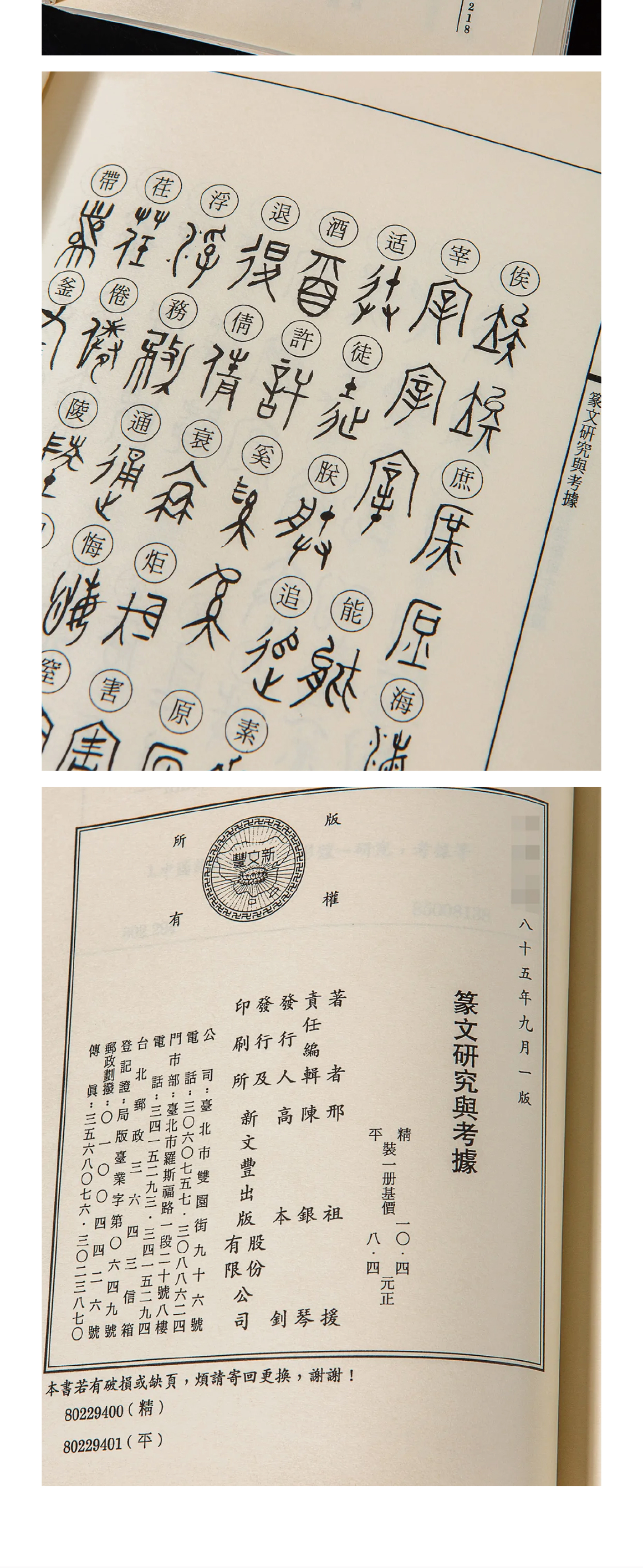 【绝版好书】《篆文研究与考据》32开278页,1996年新文丰初版