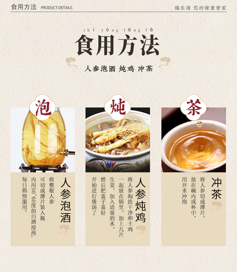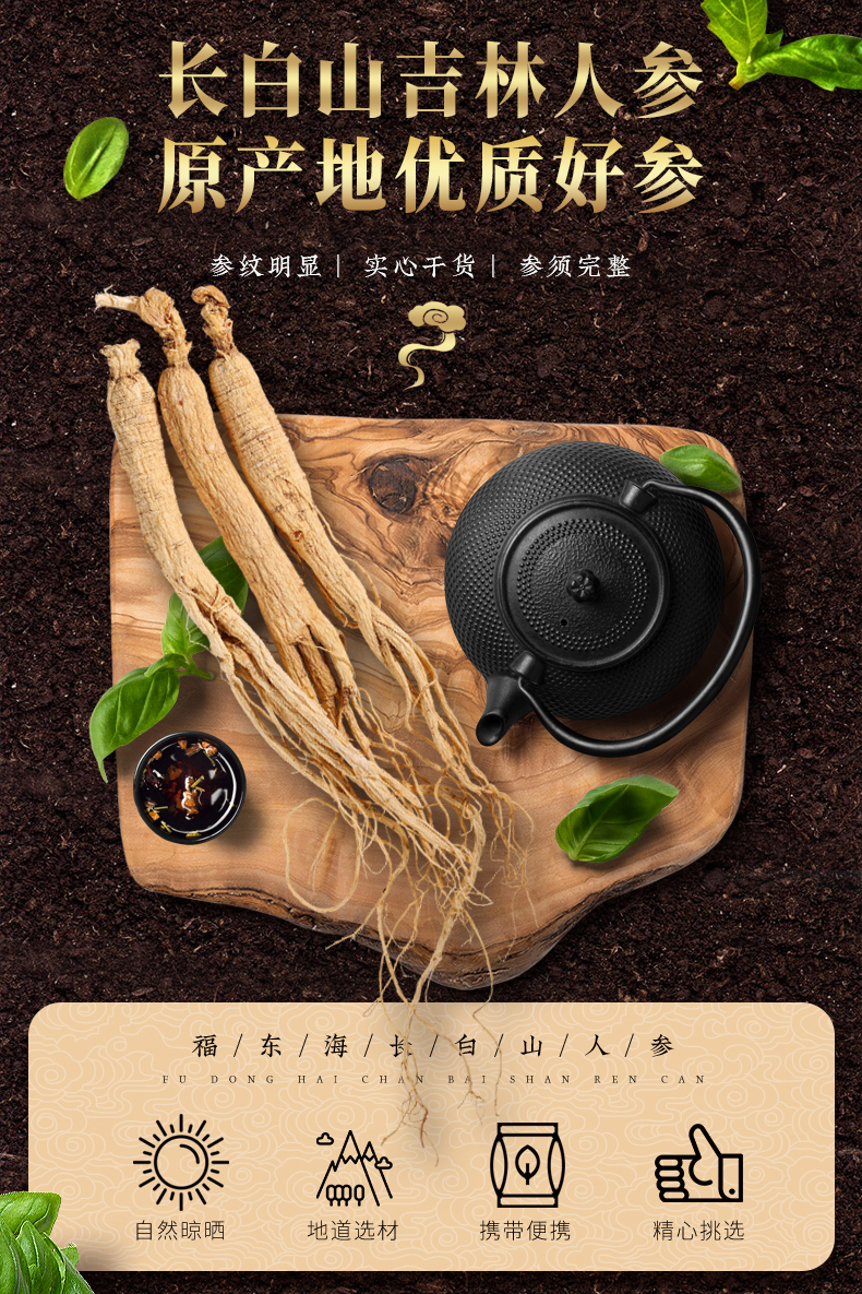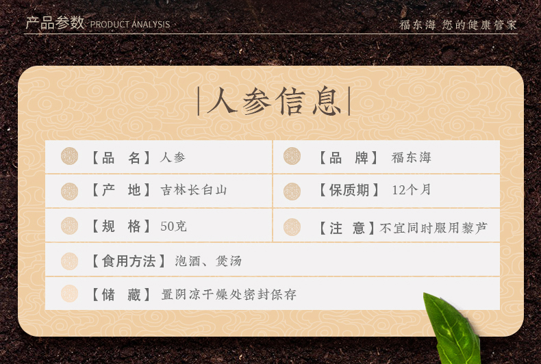 福东海 人参精选吉林长白山人参50克/盒 送礼品礼盒装滋补品