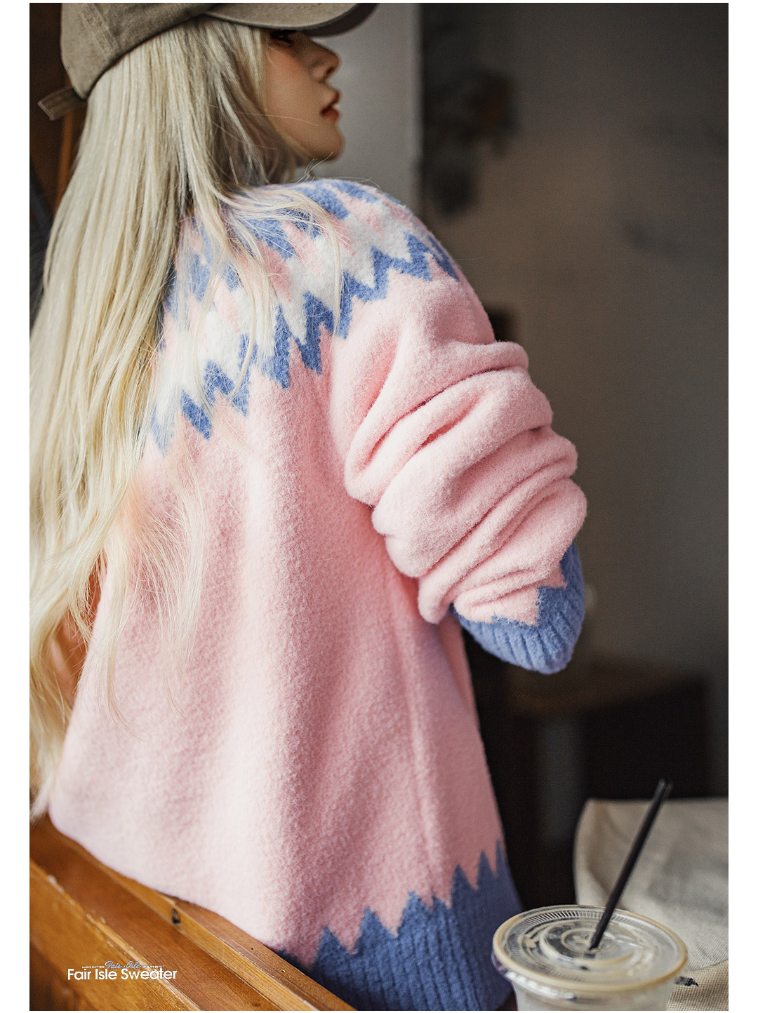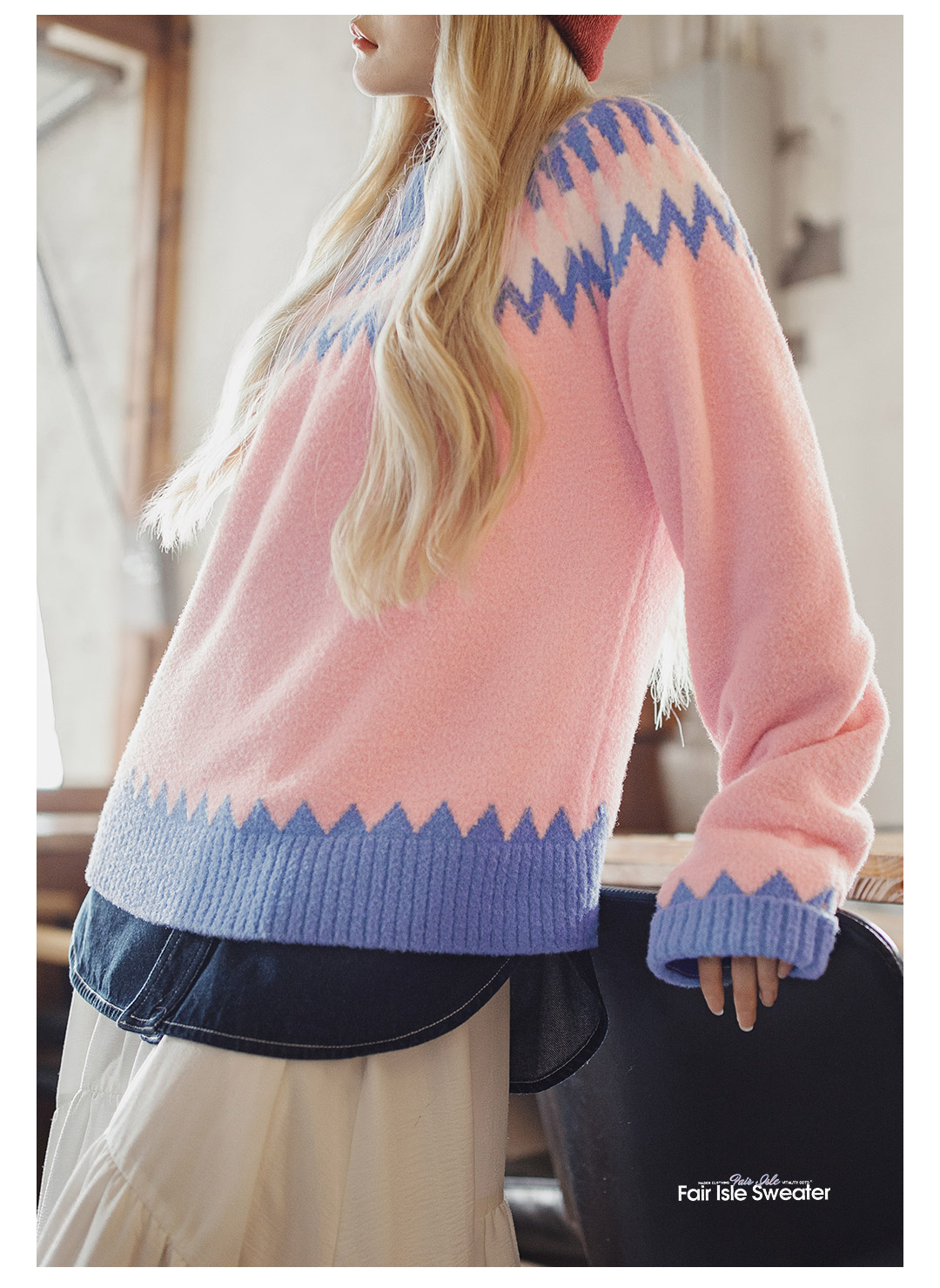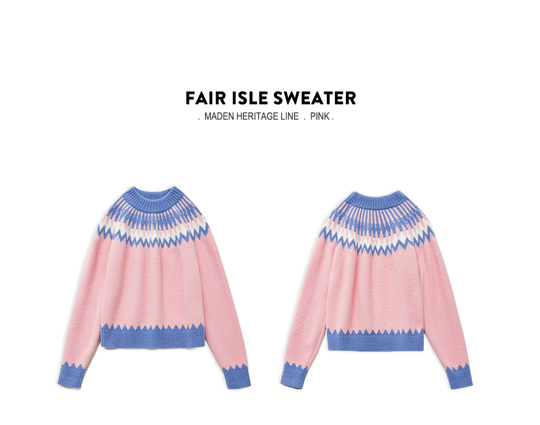 马登粉色复古费尔岛软糯叽叽宽松套头加厚保暖毛衣不扎人女士秋冬