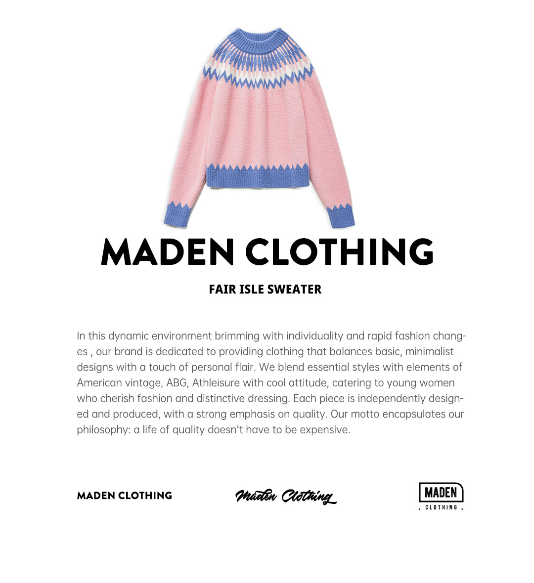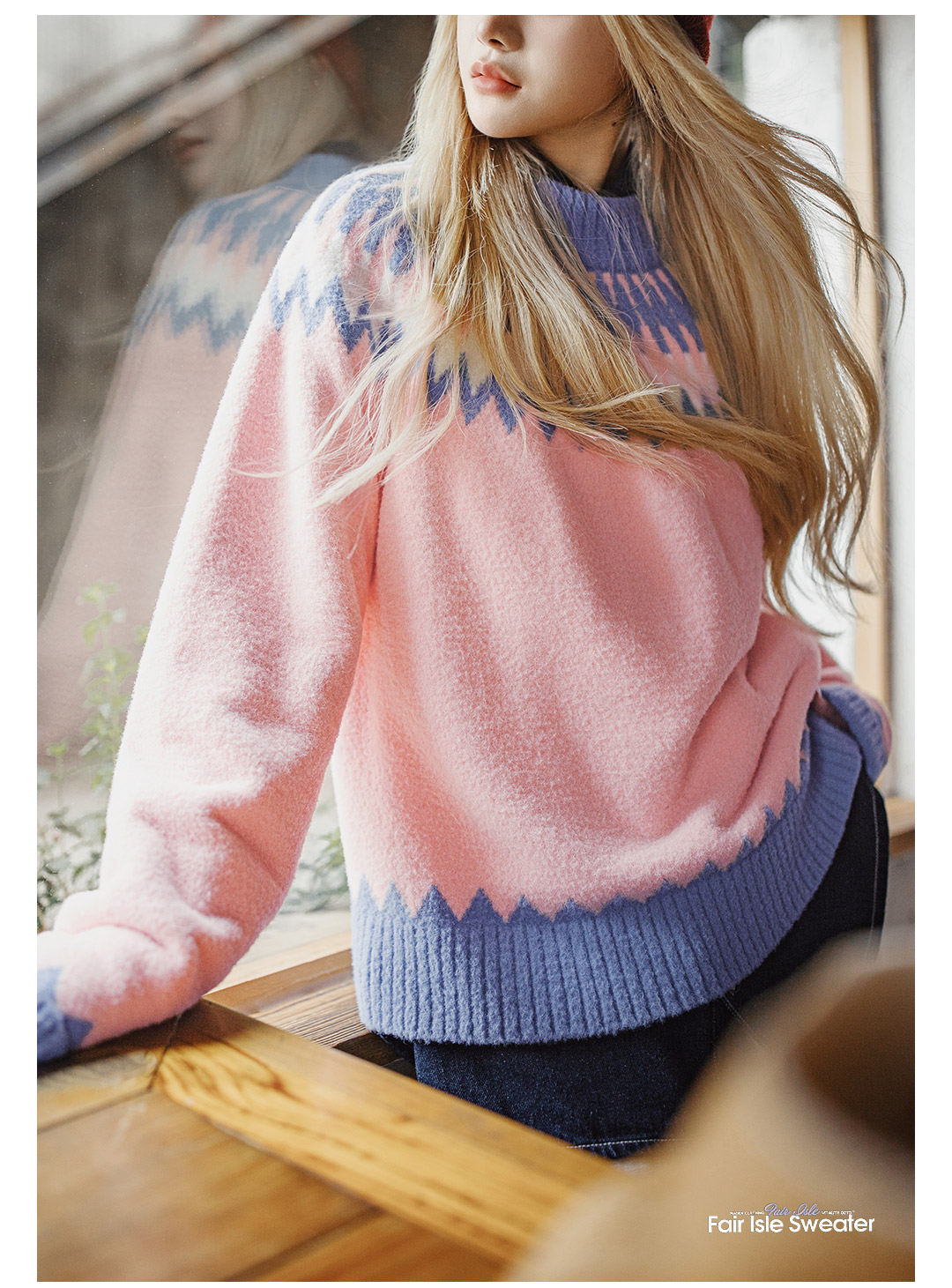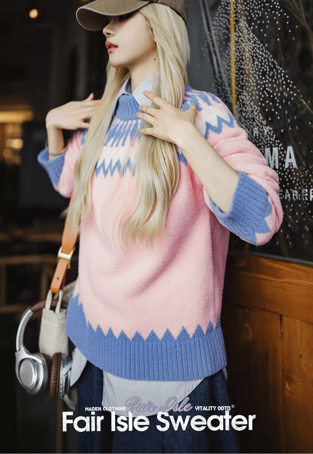 马登粉色复古费尔岛软糯叽叽宽松套头加厚保暖毛衣不扎人女士秋冬