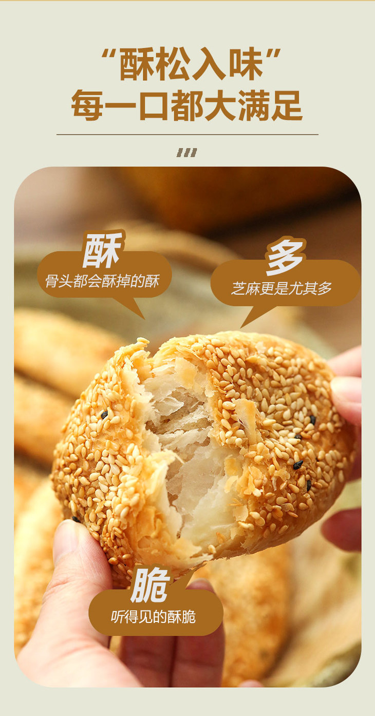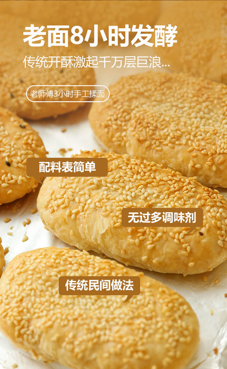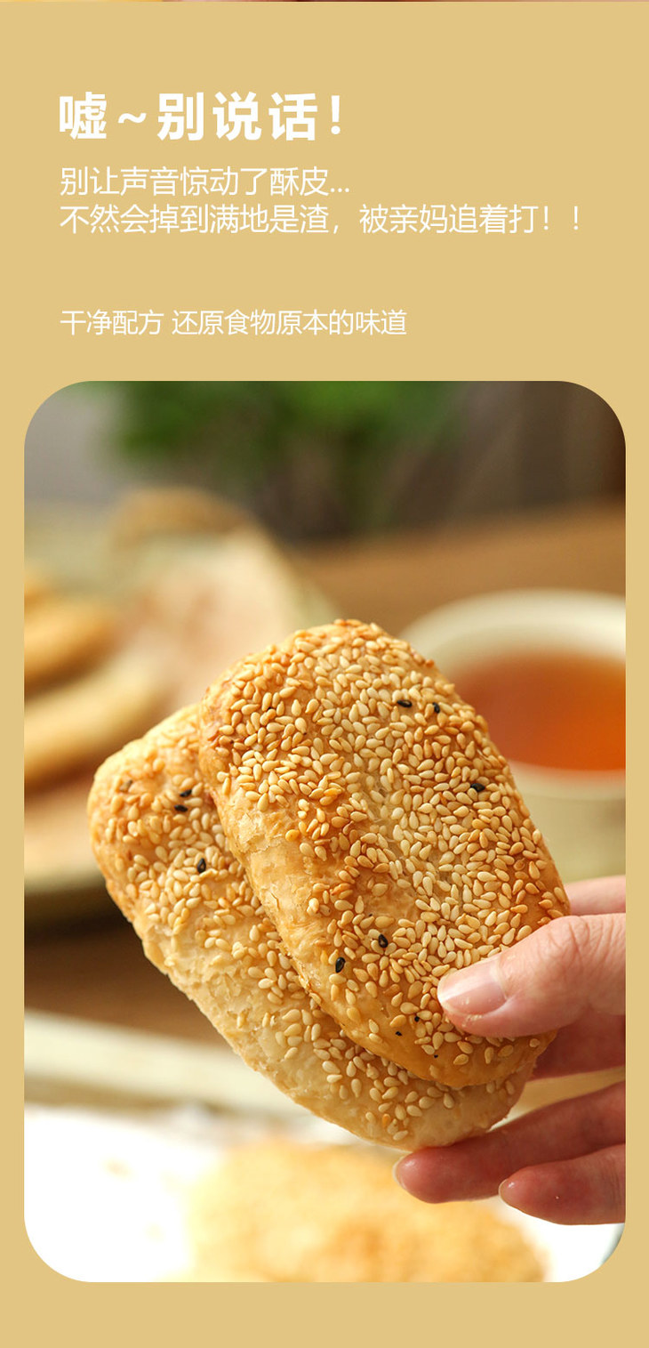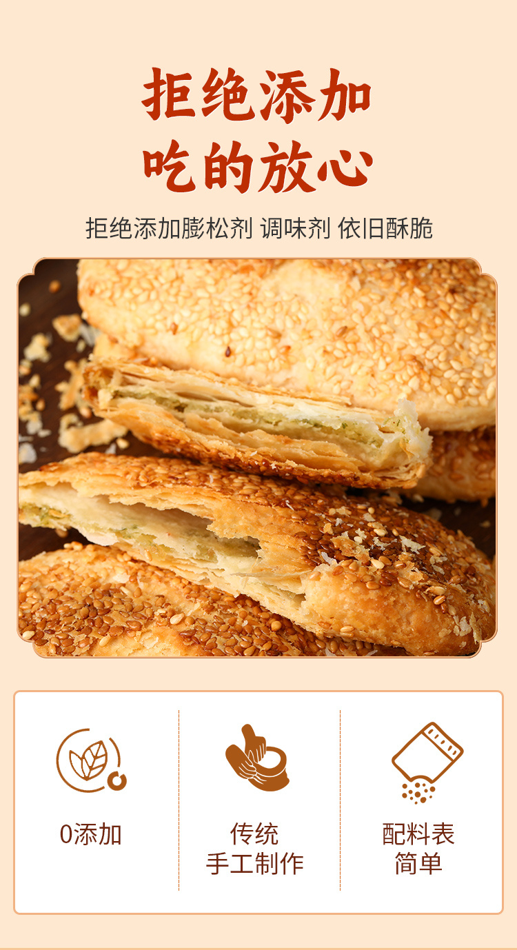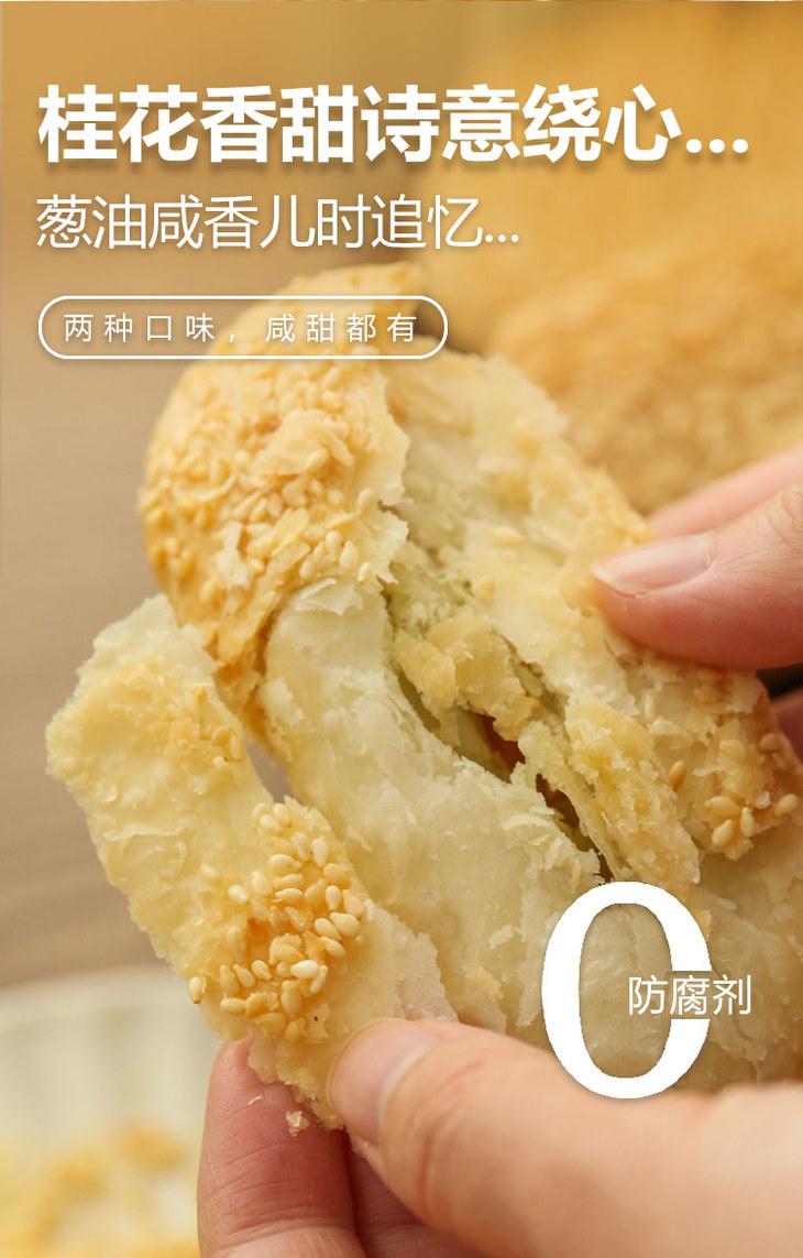 纯手工雪花芝麻酥饼 不加膨松剂 不加防腐剂 香酥可口 芝麻浓香 唇齿留香(咸葱油/甜桂花*8个/袋/单饼40g)
