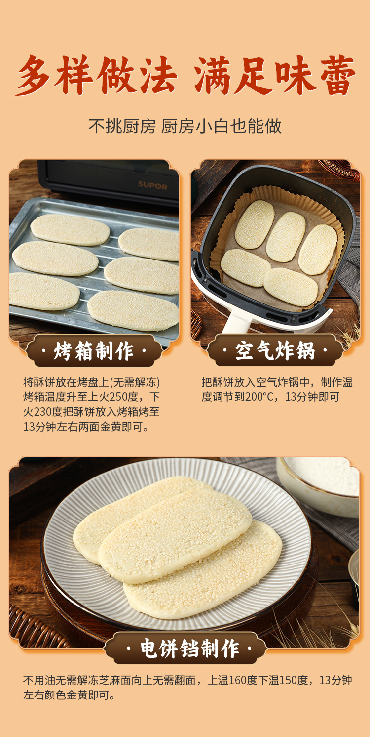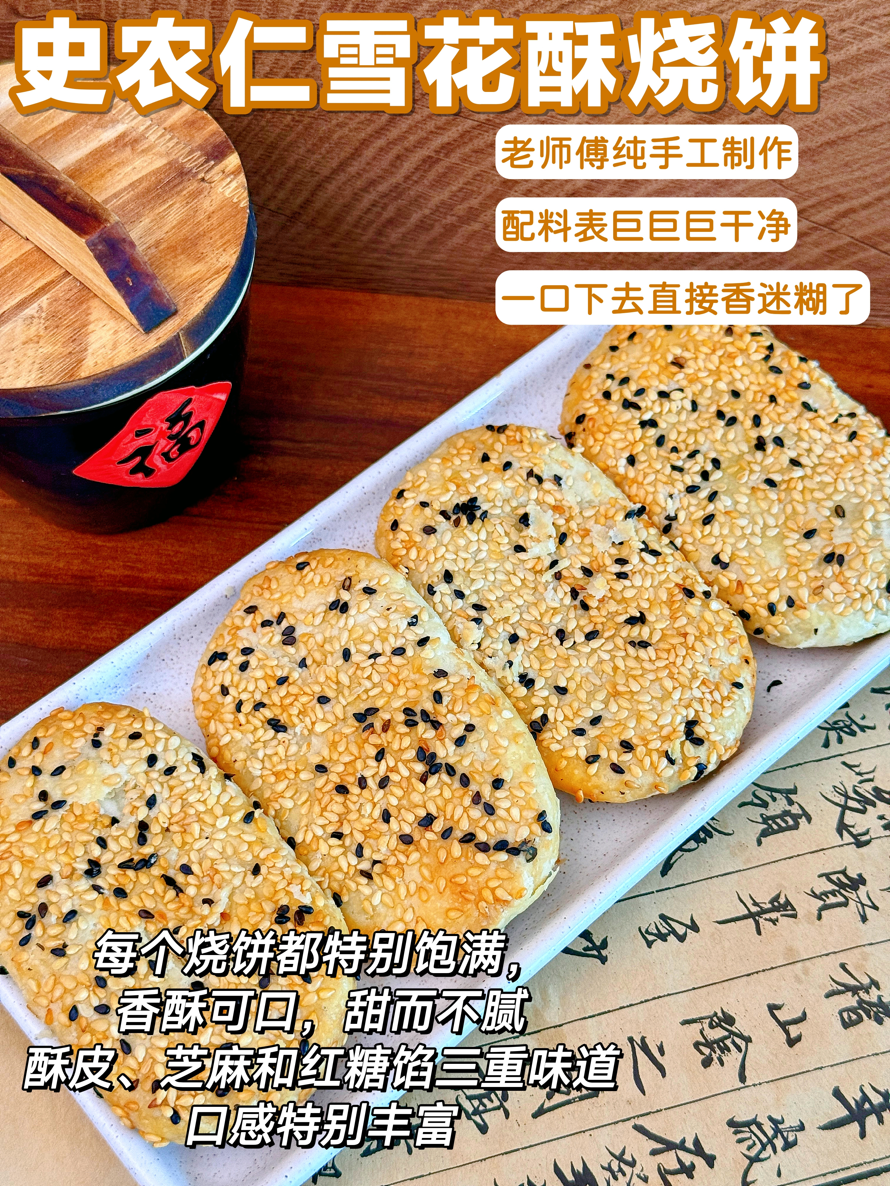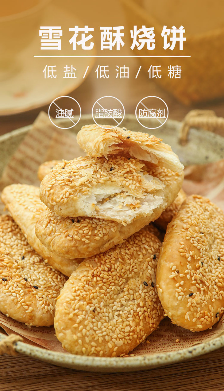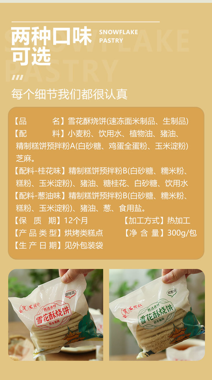 纯手工雪花芝麻酥饼 不加膨松剂 不加防腐剂 香酥可口 芝麻浓香 唇齿留香(咸葱油/甜桂花*8个/袋/单饼40g)