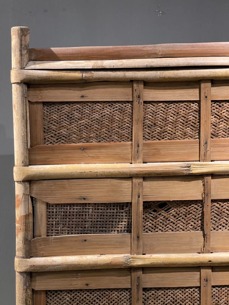 此竹竿构筑储存橱柜,以天然孟宗竹竿与竹蓖精新编织构筑而成,传统隼卯与竹条建构,未使用铁钉、铁线或是黏胶结合,尽显古代竹制家具的精湛工艺。孟宗竹自然斑纹如行云流水,表面老包浆醇厚,色泽柔美,非常美丽,是南方用于储存茶叶或是食物的橱柜,能防止蚊虫的同时又能保持通风,取材天然竹材打造简约大气的造型,整体设计微妙精准,全然以手工编制构筑而成,实用器具却如此讲究,令人耳目一新。