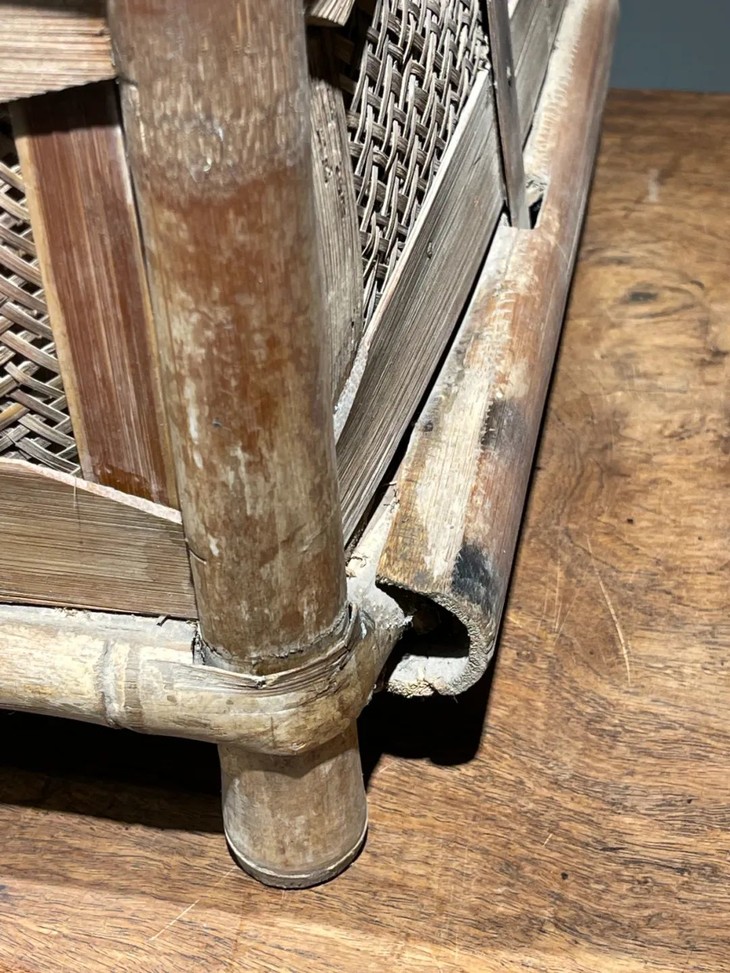 此竹制储存茶叶橱柜除边沿细微磕碰与表面细微磨痕、某些竹筒龟裂与隼卯略松动外,保存完好无损,竹表面包浆皮壳温润细腻。此件竹制储存茶叶橱柜年代久远,是民国时期或更早之文人书房或是茶室的优雅橱柜。