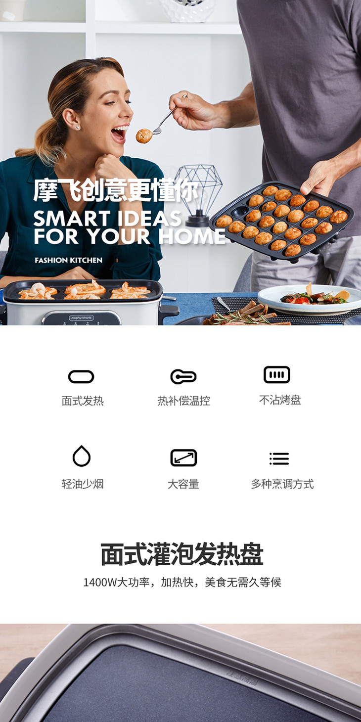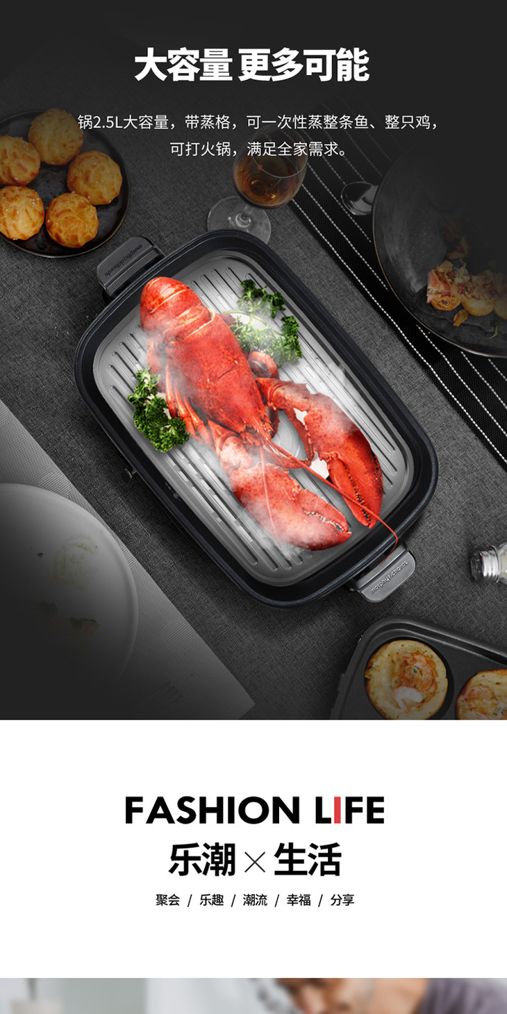 英国摩飞|舒淇同款 明星代言 摩飞多功能料理锅电烧烤肉锅炉网红锅涮烤一体家用蒸煮炒煎电火锅 型号:MR9088(付款后三天内发货)