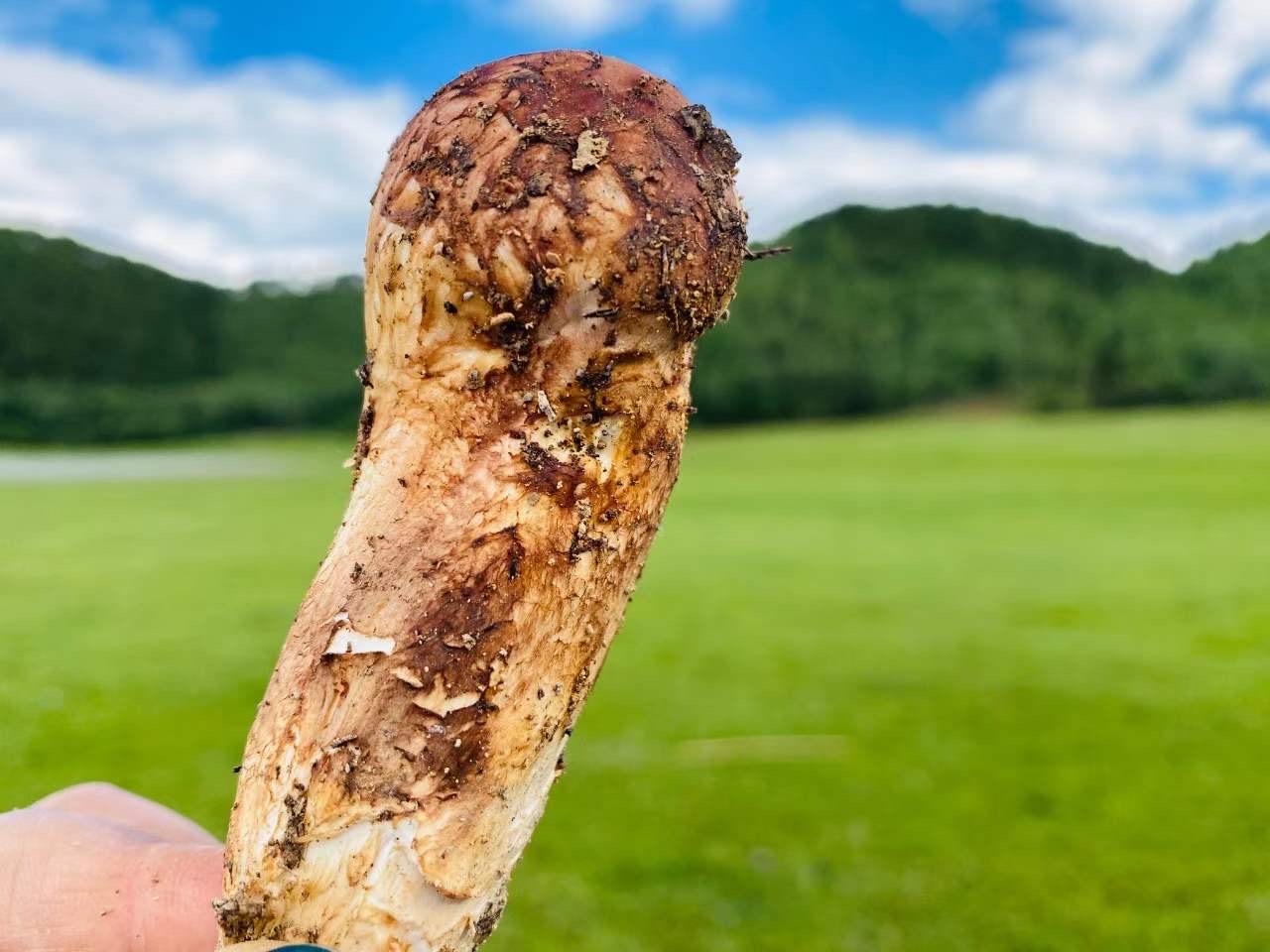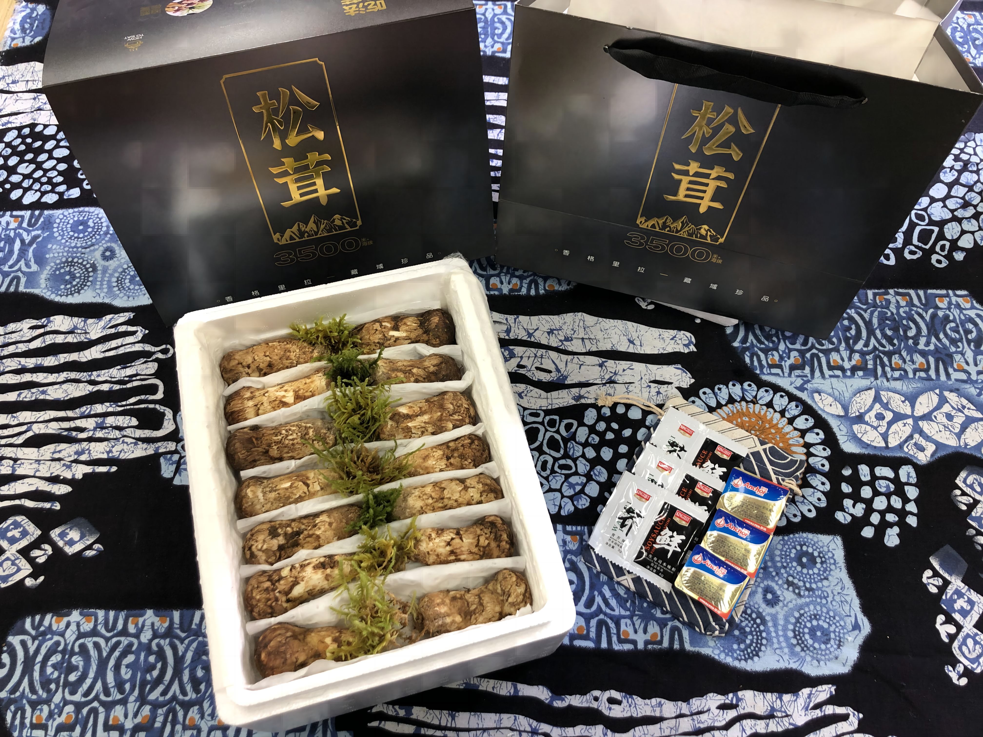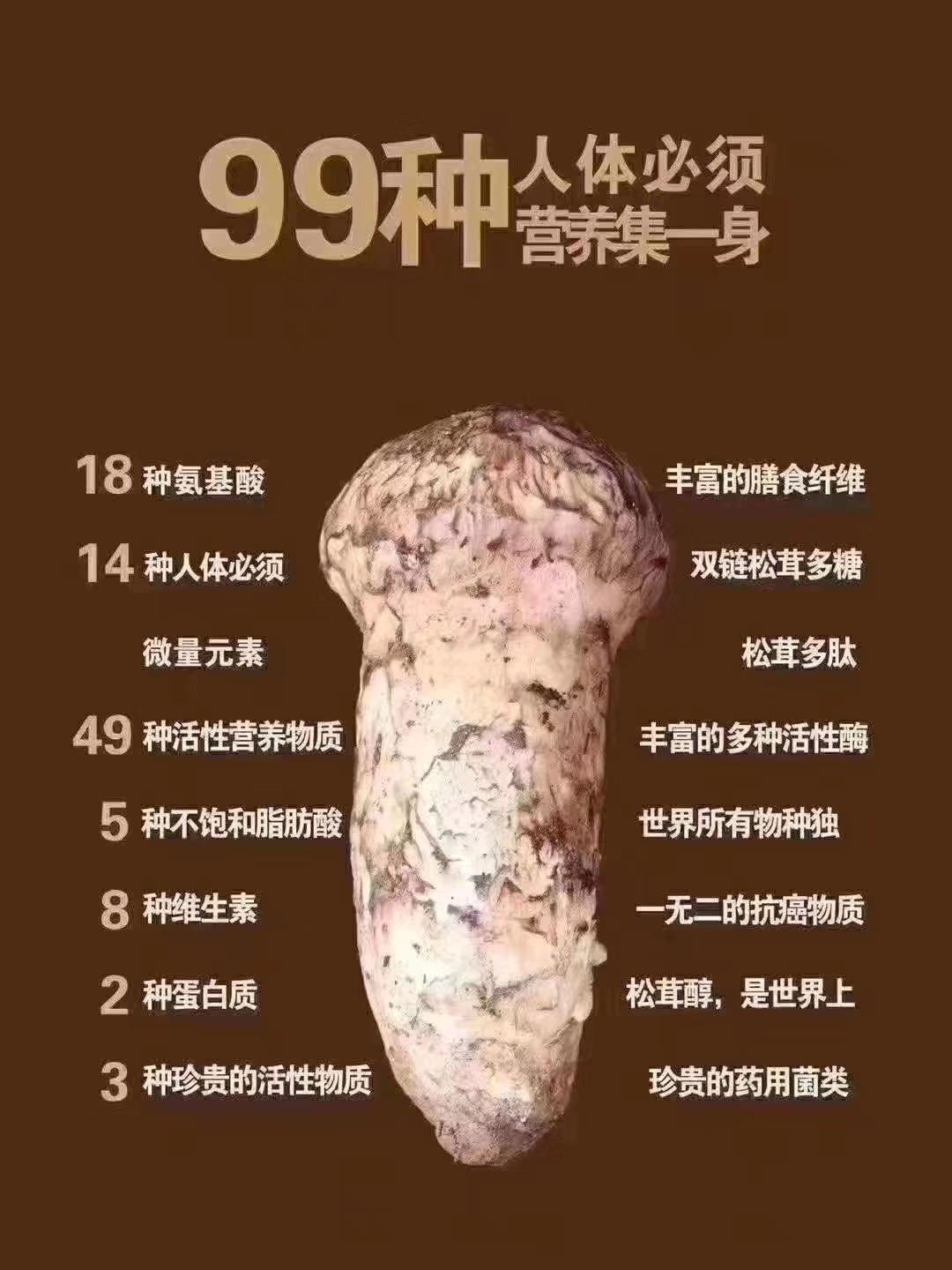 黏黏的是因为松茸从萌芽到出土要经历6年时间,本身有一层保护膜,有点黏,还有点腥臭味,有补肾的功效。吃的时候是要削皮处理的哦
