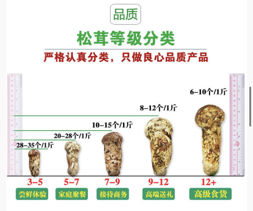 松茸是野生的 大大小小肯定都会有的 这个我们目前确实还无法做到每一个都是一样的大小 还请客户那边理解下 野生食材不是种植的 我们的发货标准都是比我们售卖的长度规格要多1厘米的 可以让客户用尺子量一下是否达标