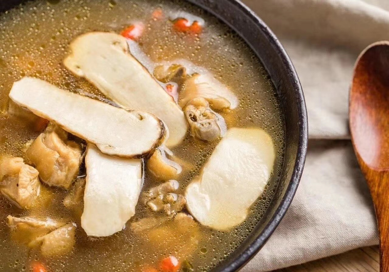 【吃法三:高汤煲松茸】一般最常见最简单的就是鸡汤炖松茸了, 在鸡汤炖好出锅前30分钟,加入处理好的松茸即可。