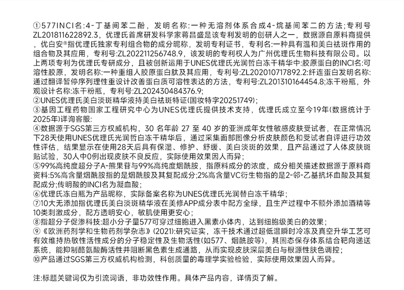 【持证美白】优理氏光润皙白冻干粉 持证美白源头焕白祛黄褪黑光感提亮补水保湿冻干精华液
