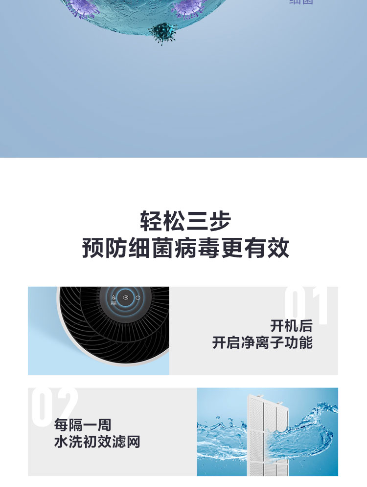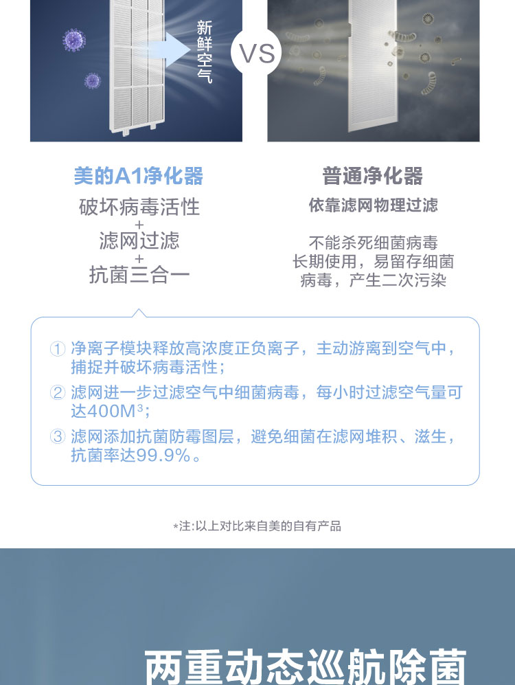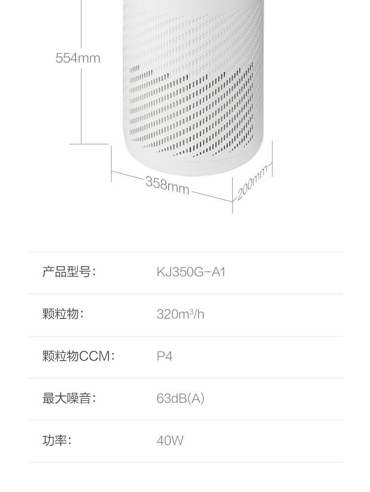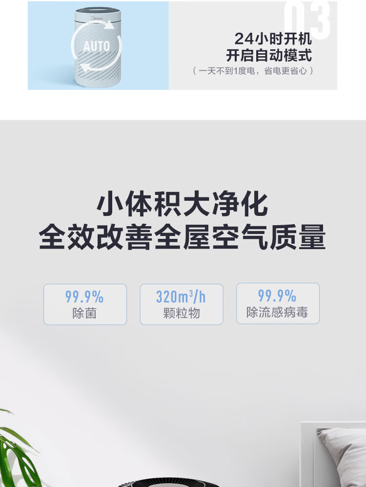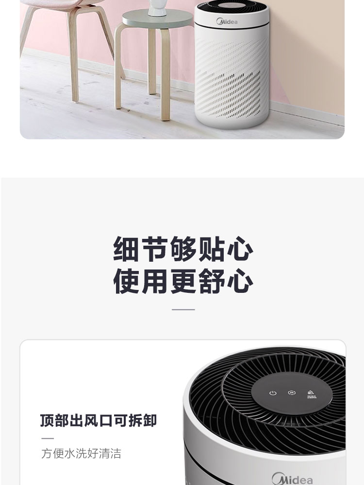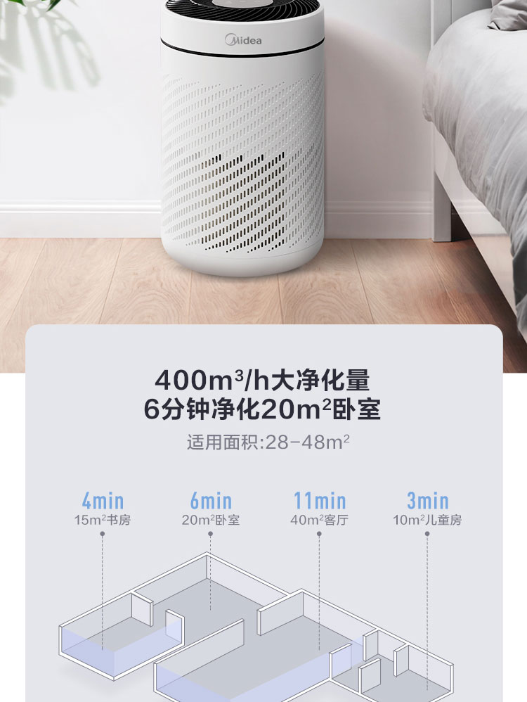 美的(Midea)空气净化器除烟味家用除灰尘空气消毒机除雾霾粉尘KJ350G-A1