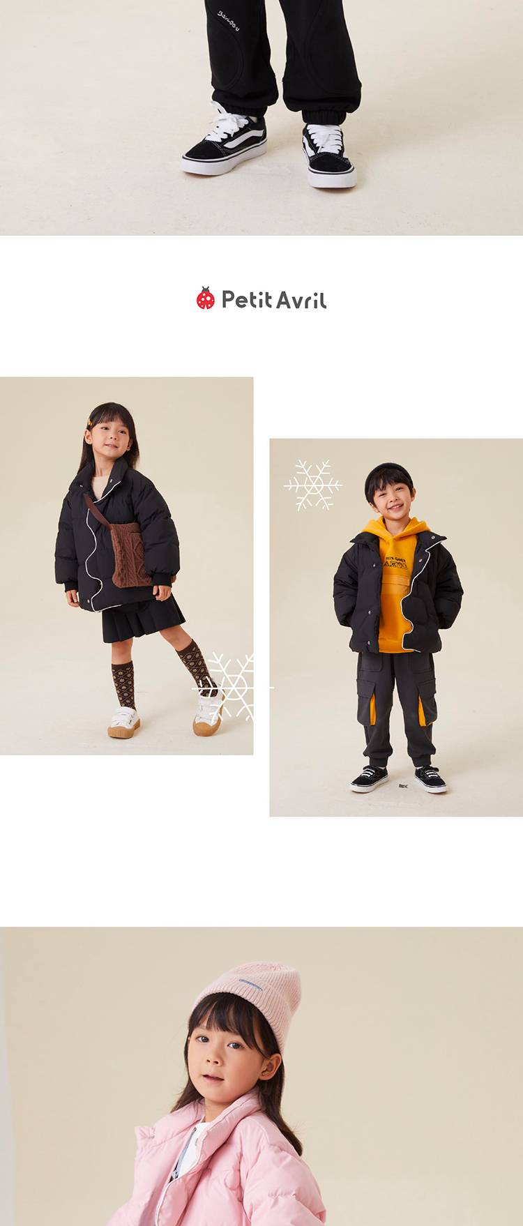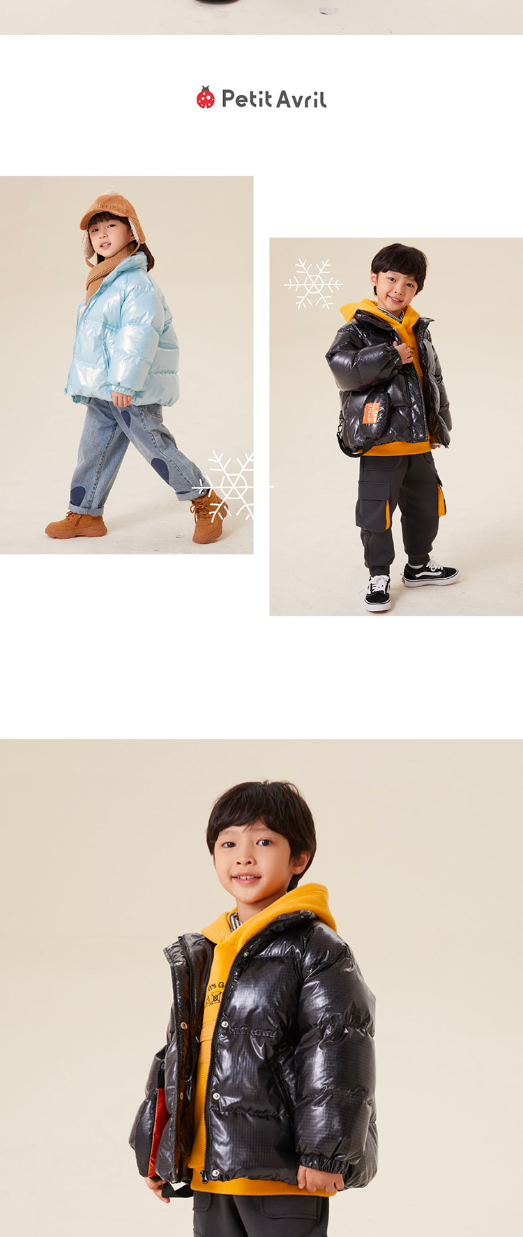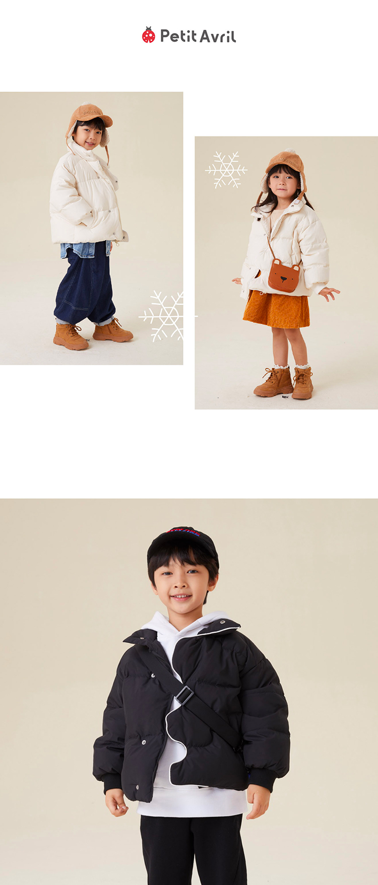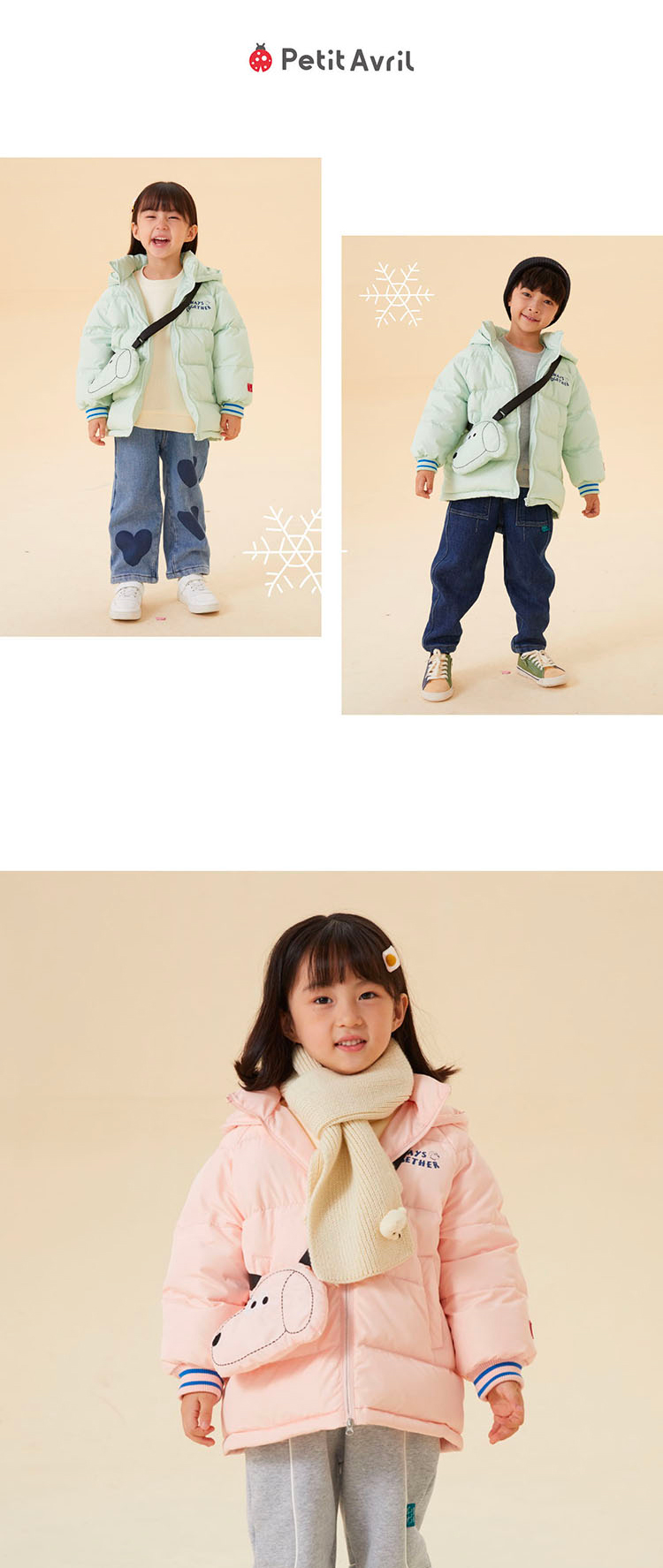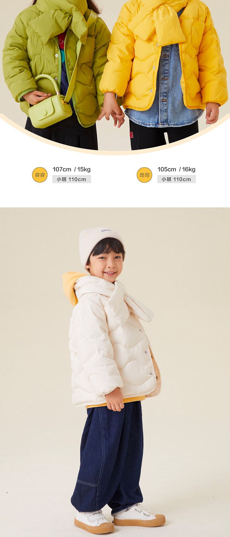 PetitAvril贝甜 儿童挎包羽绒服、炫彩立领羽绒服、可脱卸围巾羽绒服、狗狗图案羽绒服(太平鸟旗下品牌)