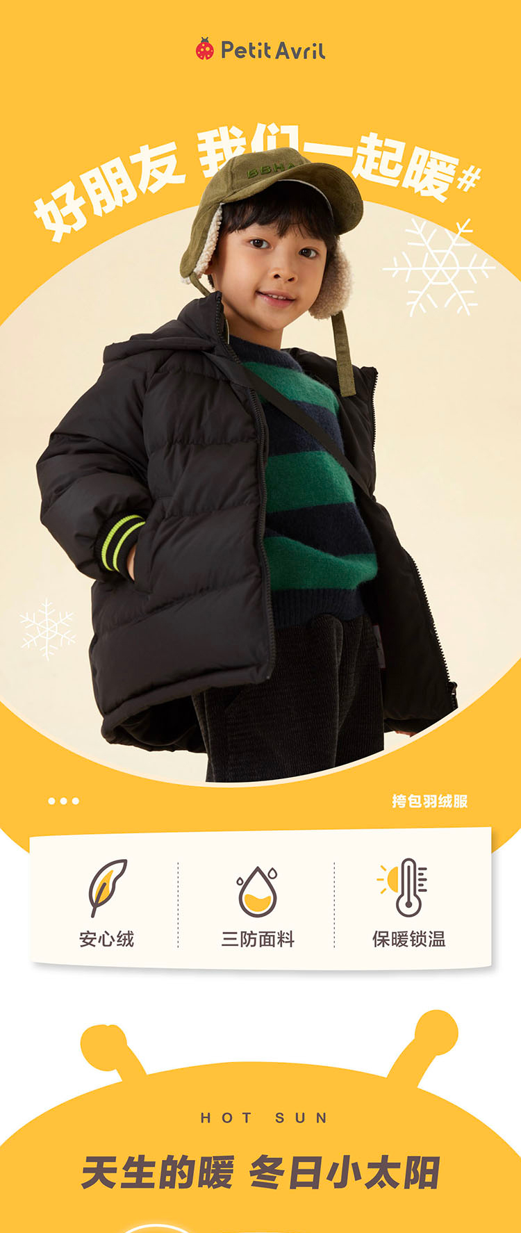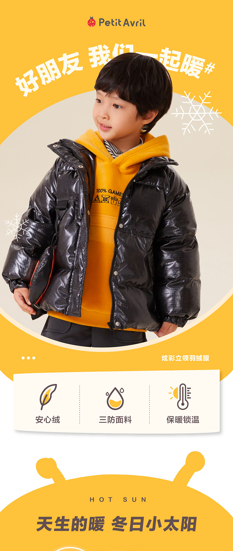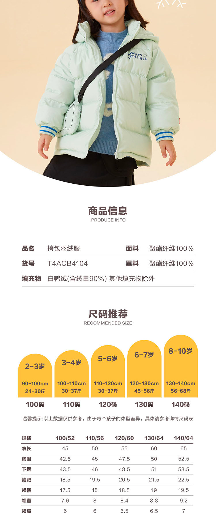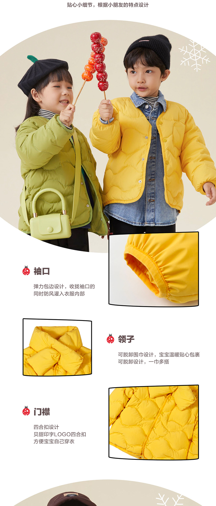 PetitAvril贝甜 儿童挎包羽绒服、炫彩立领羽绒服、可脱卸围巾羽绒服、狗狗图案羽绒服(太平鸟旗下品牌)