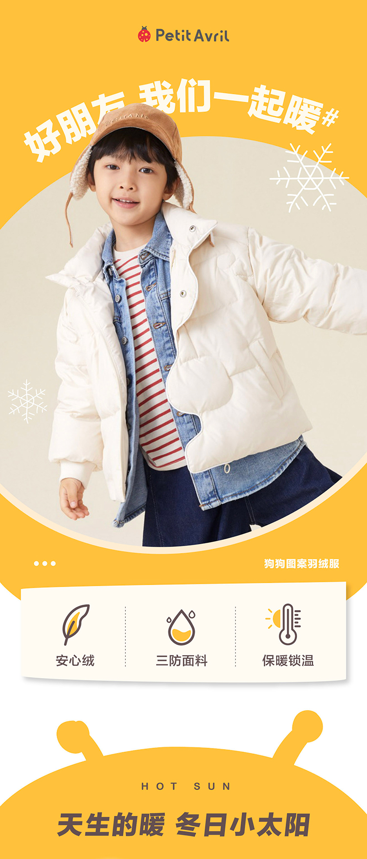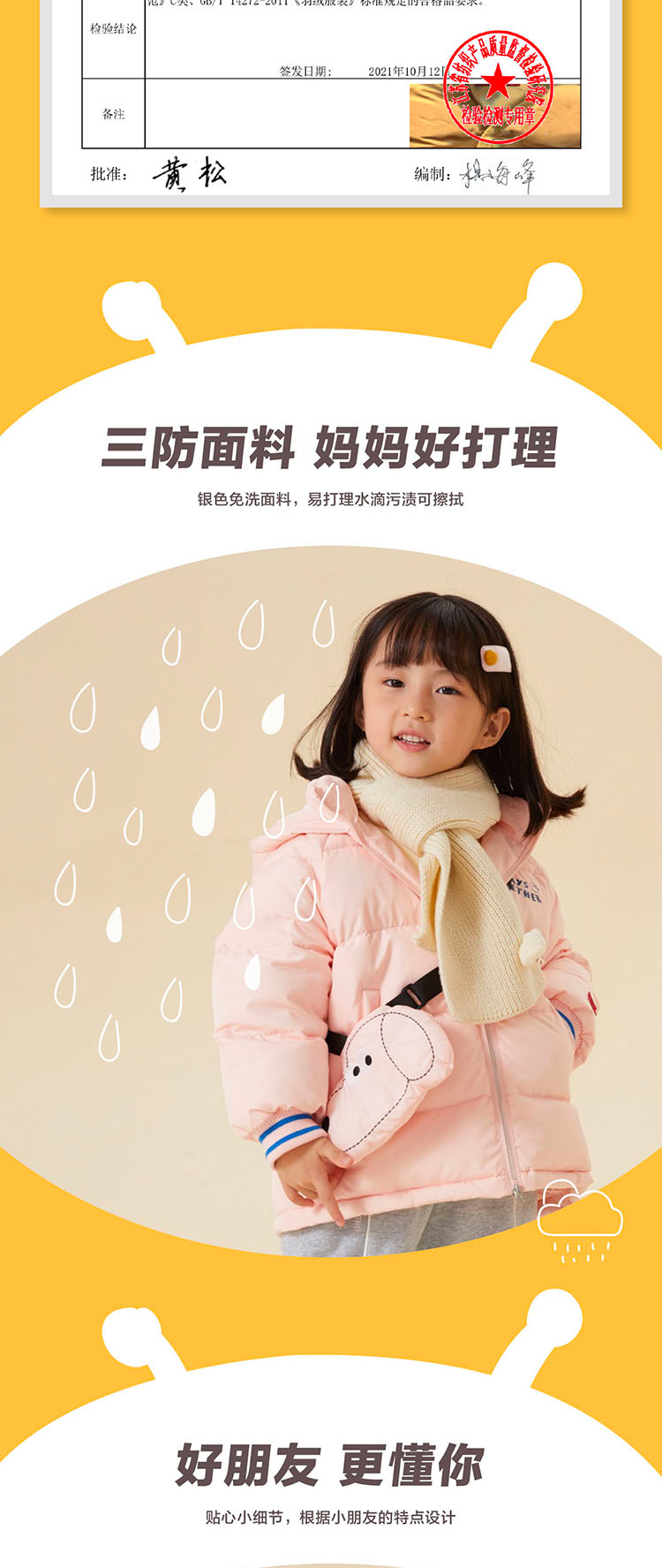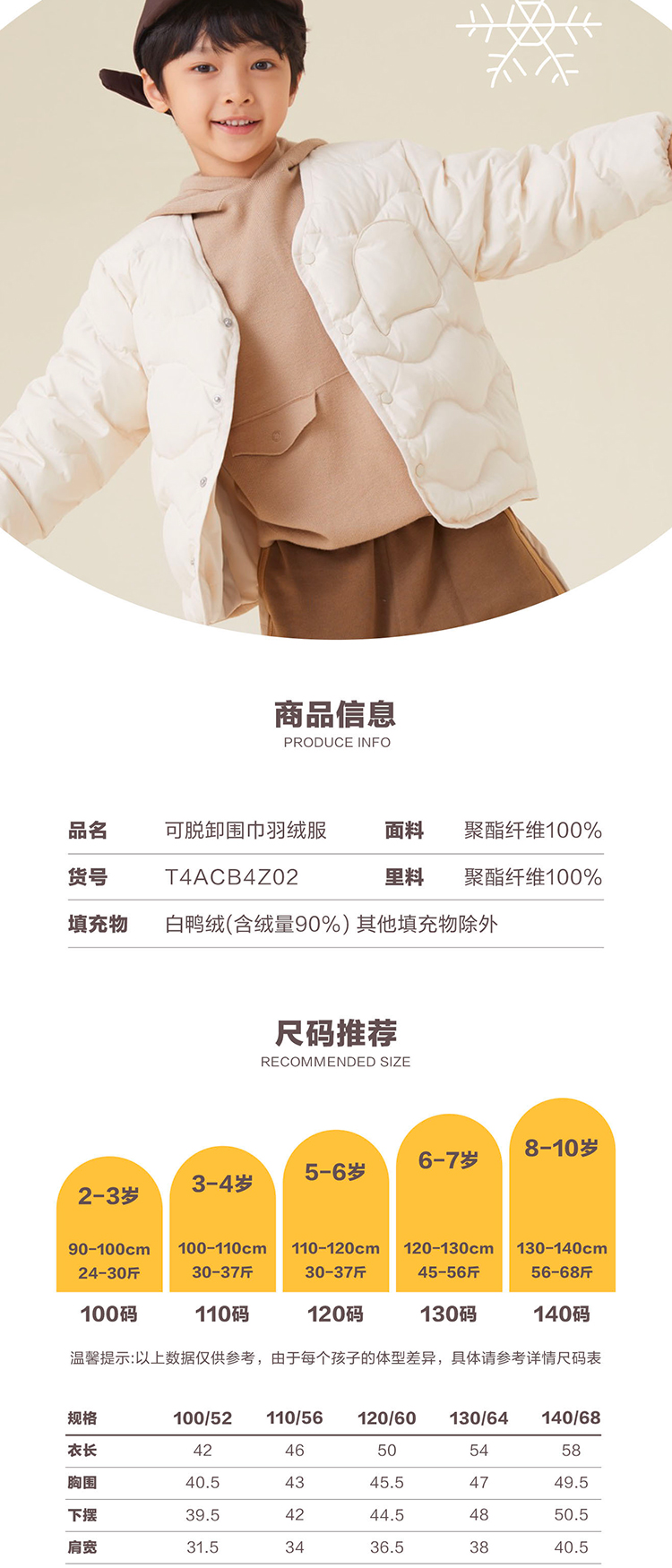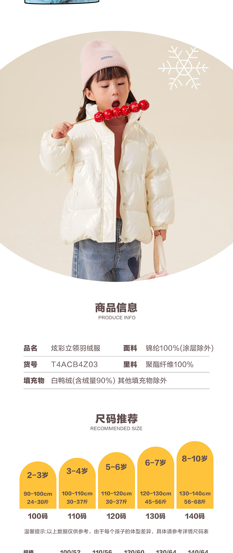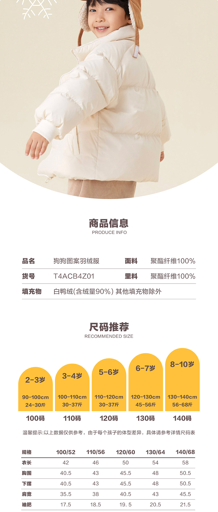 PetitAvril贝甜 儿童挎包羽绒服、炫彩立领羽绒服、可脱卸围巾羽绒服、狗狗图案羽绒服(太平鸟旗下品牌)