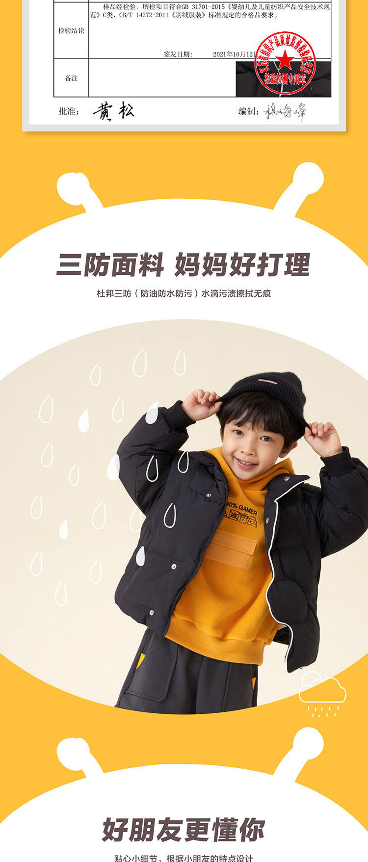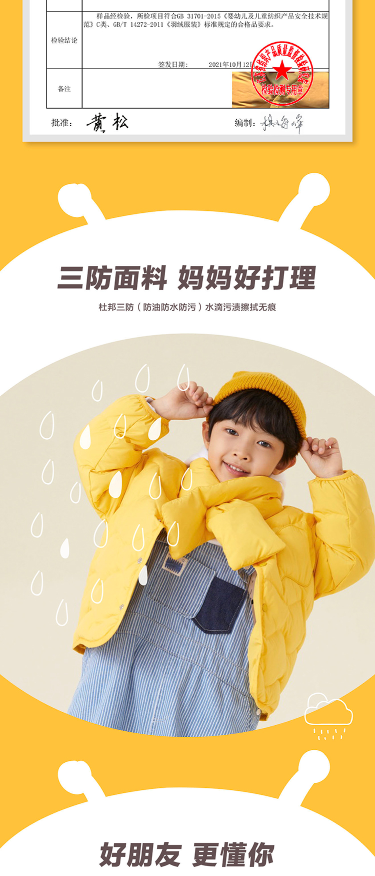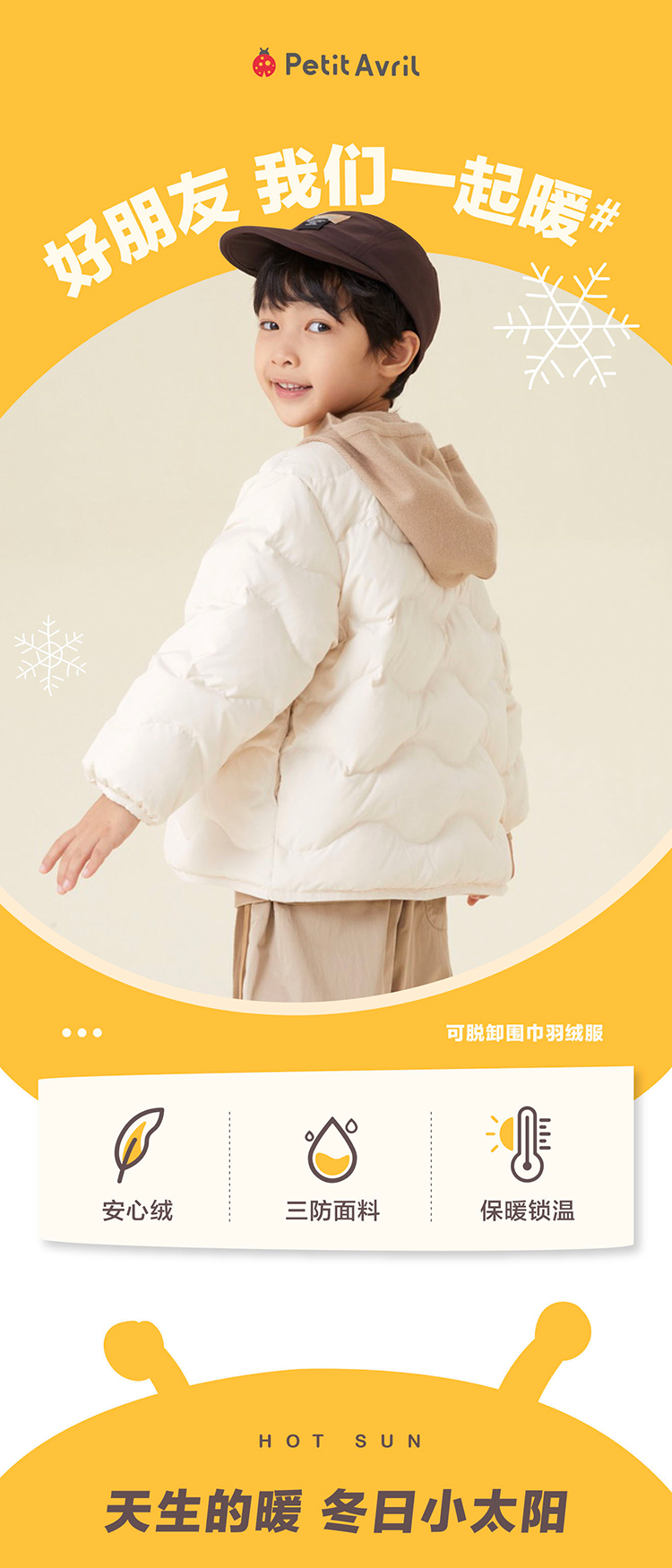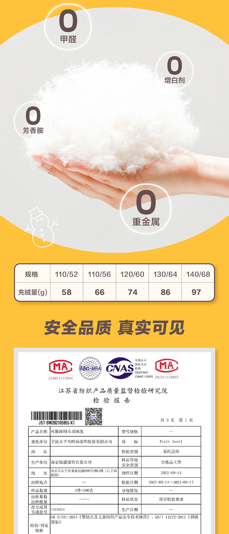 PetitAvril贝甜 儿童挎包羽绒服、炫彩立领羽绒服、可脱卸围巾羽绒服、狗狗图案羽绒服(太平鸟旗下品牌)