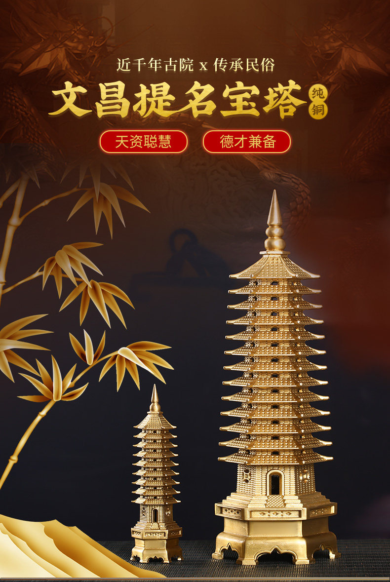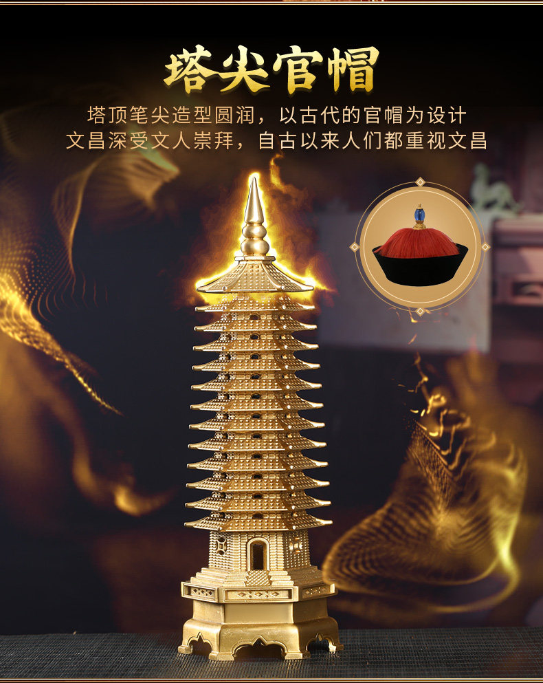 【祈愿吉品】文昌塔黄铜十三层书房摆件金榜题名中高考寓意好的礼物