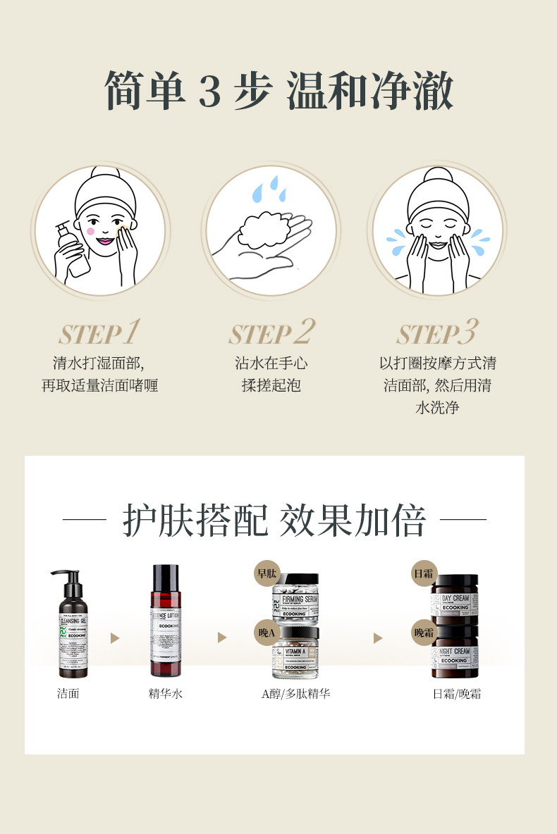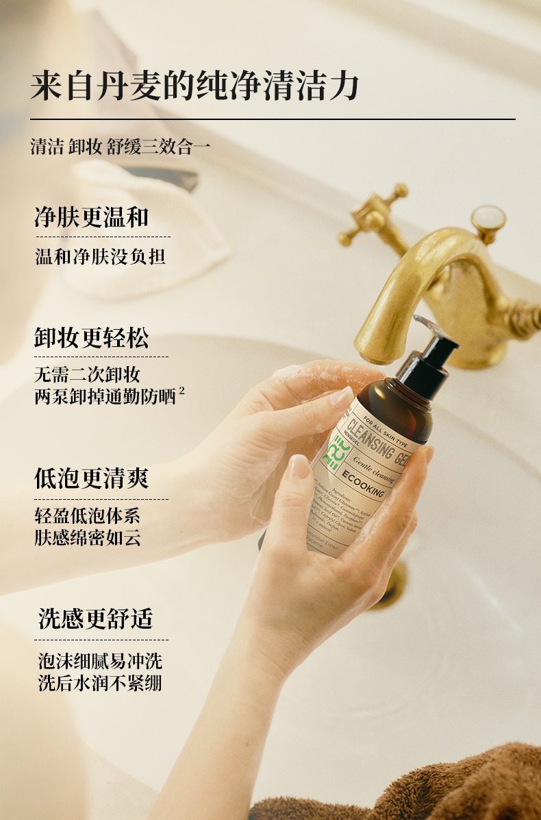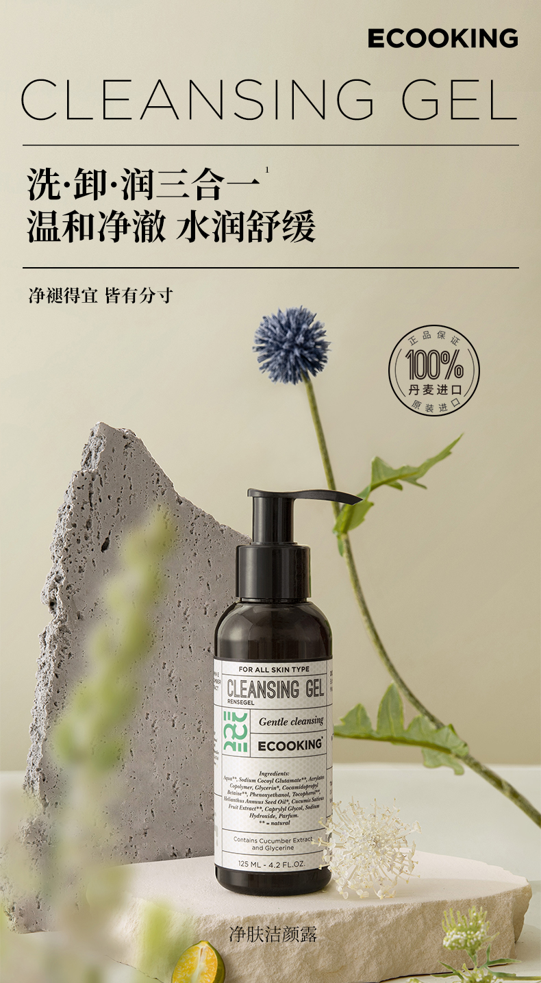 丹麦ECOOKING依蔻庭 · 净肤洁颜露氨基酸洁温和清洁卸妆控油保湿 120ml|品牌直发