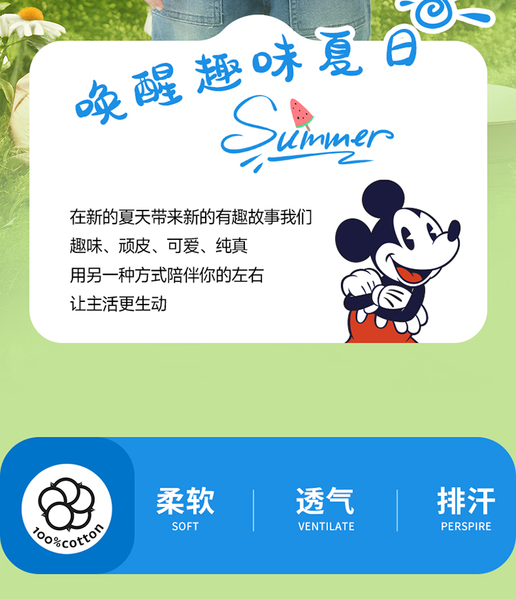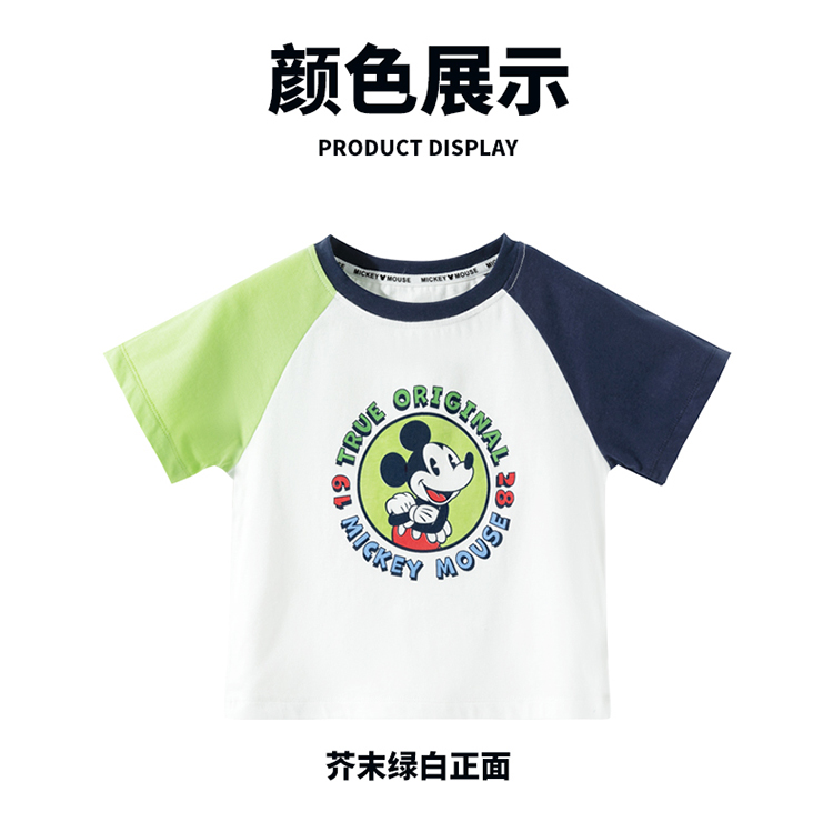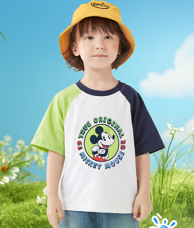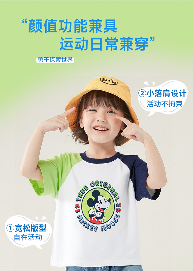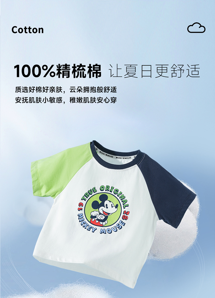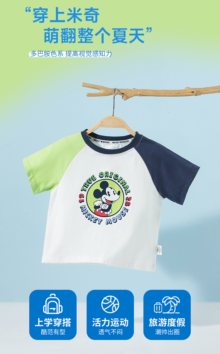 迪士尼25新款夏季女童轻薄透气冰感短袖卡通小熊印花凉感运动休闲T恤*