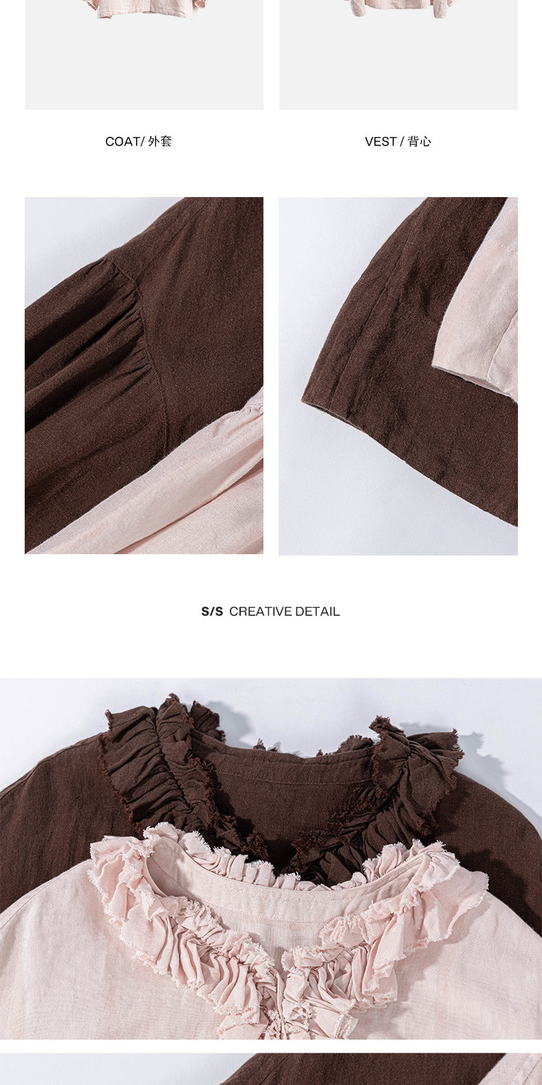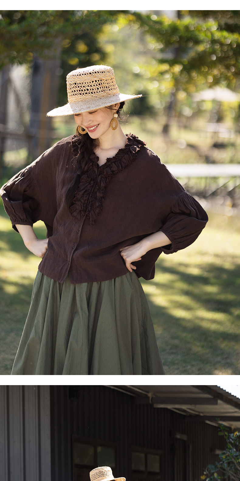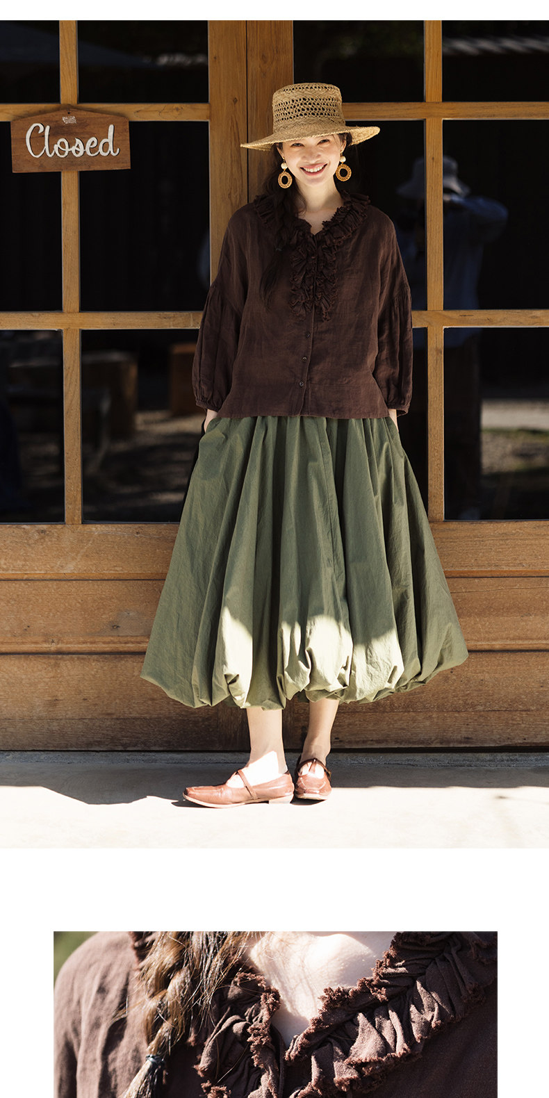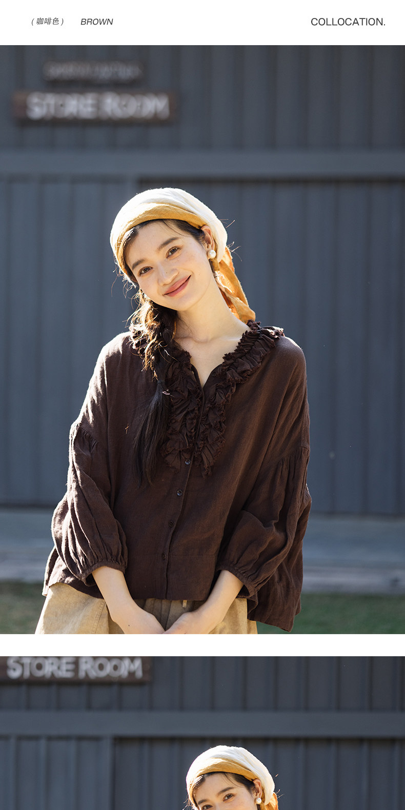 特绽放162朵/庄园衬衫*21支精梳亚麻复古手工木耳边领泡泡袖衬衫