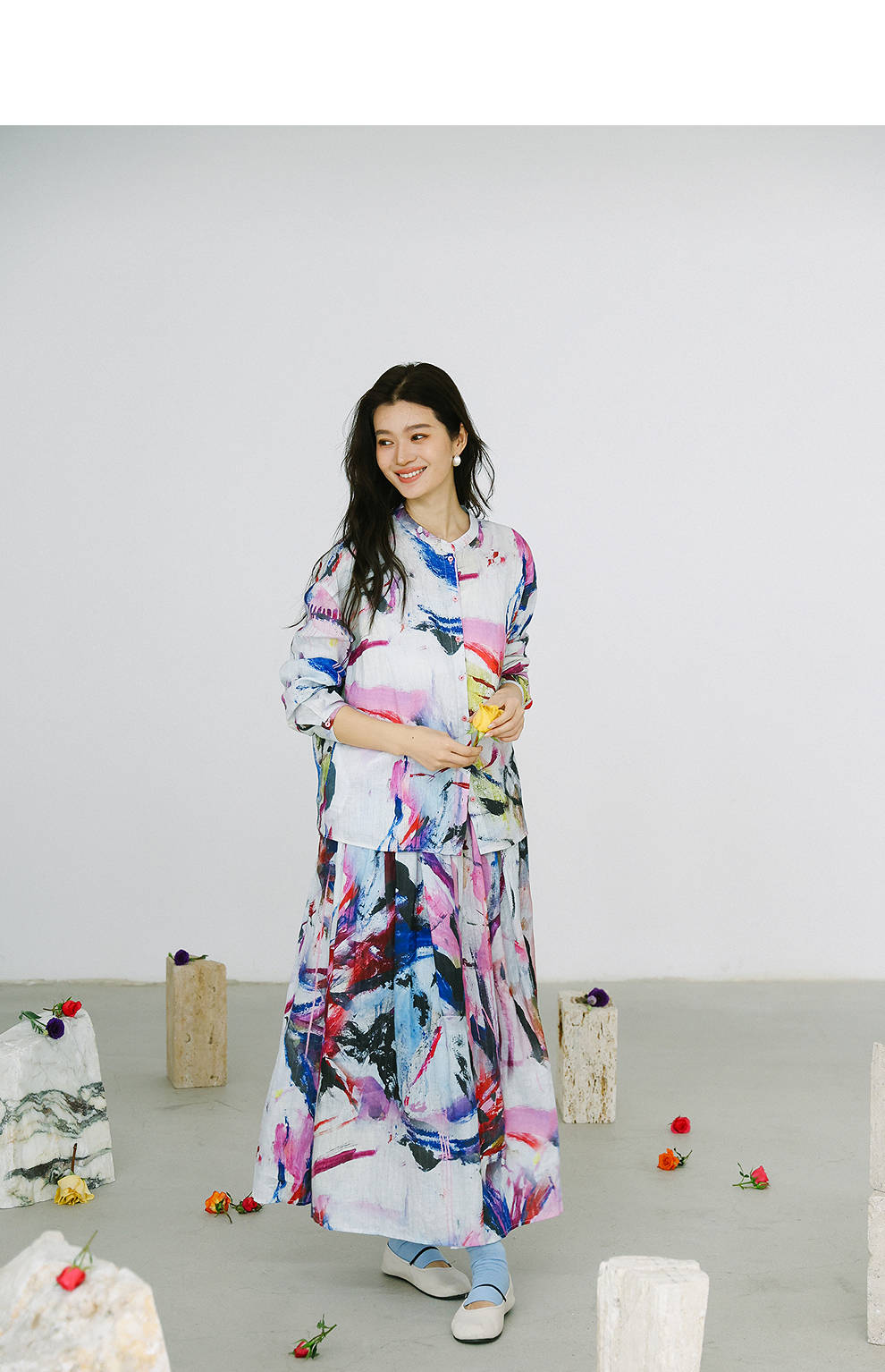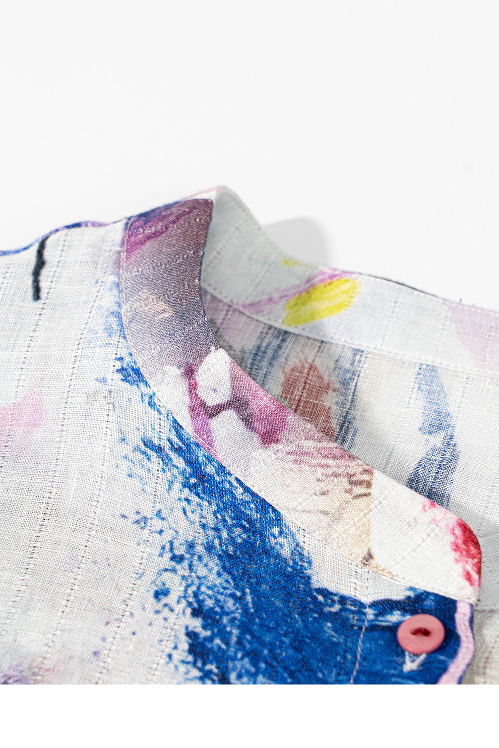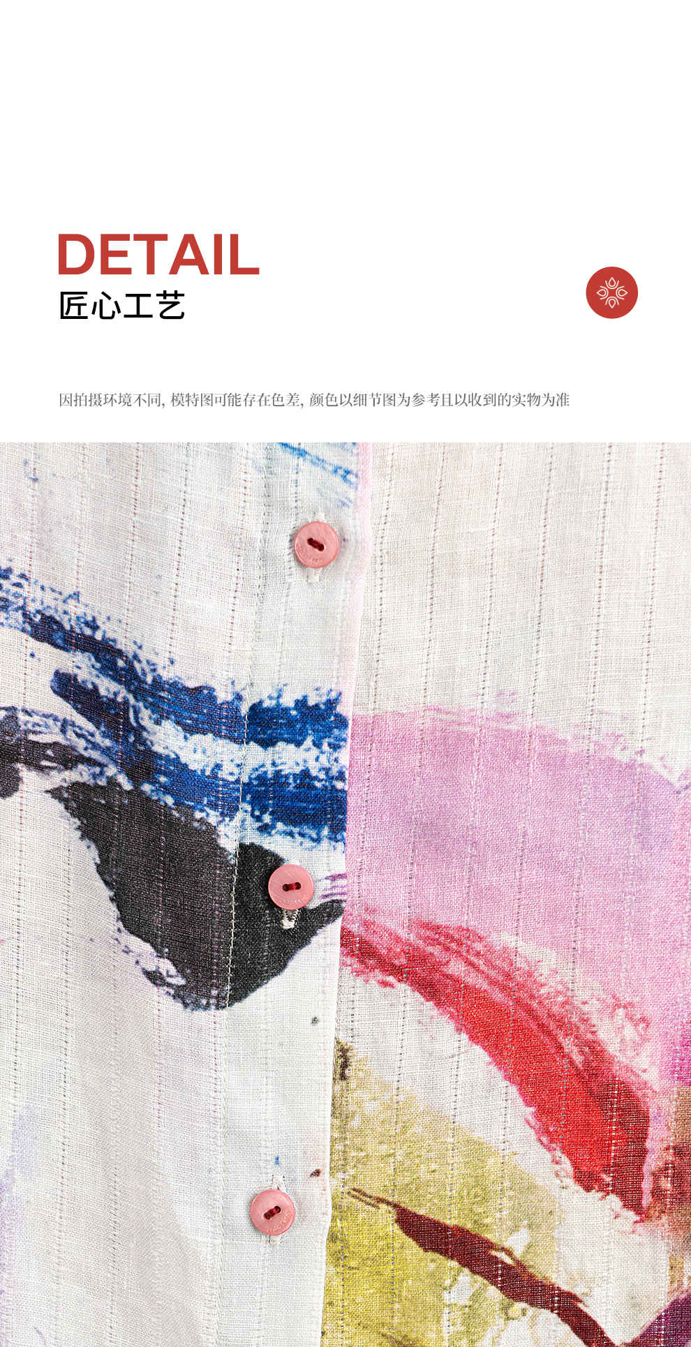 绽放173朵/「余味-2」花衬衫*zijun联名系列竖纹亚麻印花长袖衬衣
