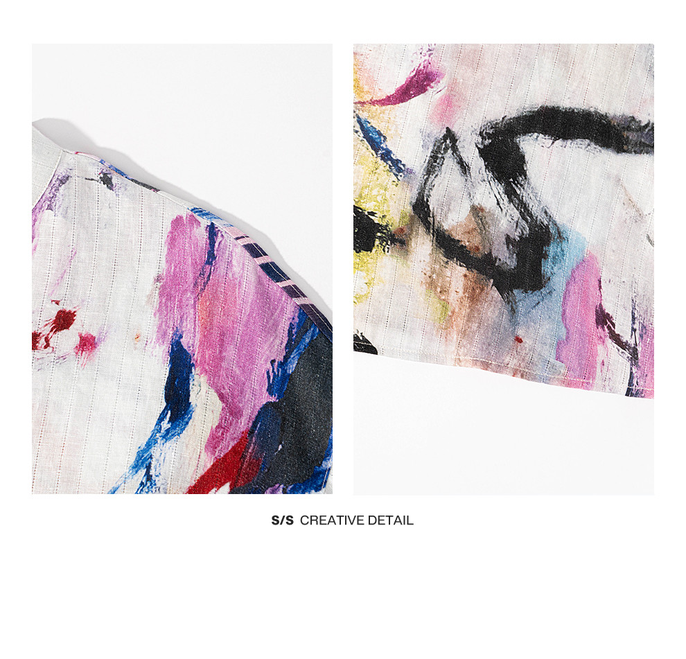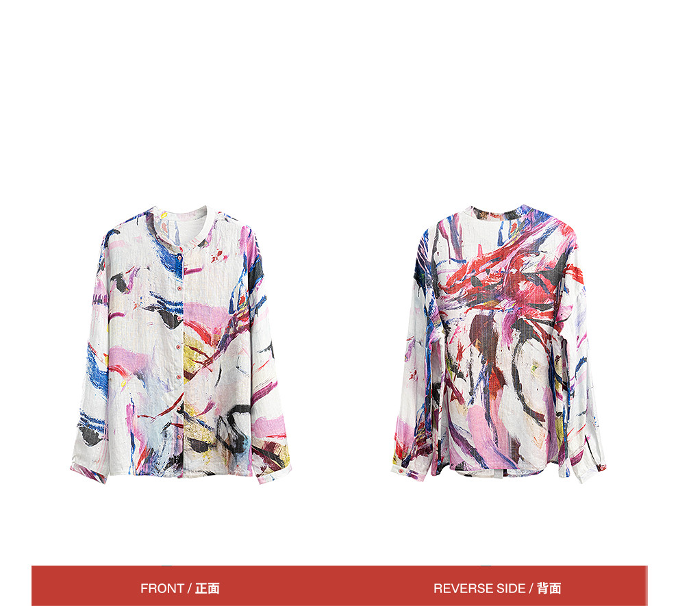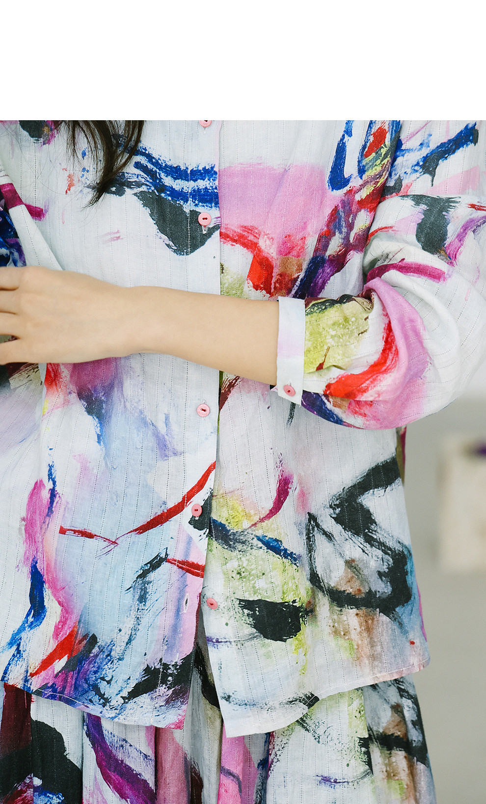 绽放173朵/「余味-2」花衬衫*zijun联名系列竖纹亚麻印花长袖衬衣
