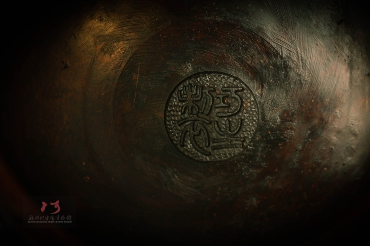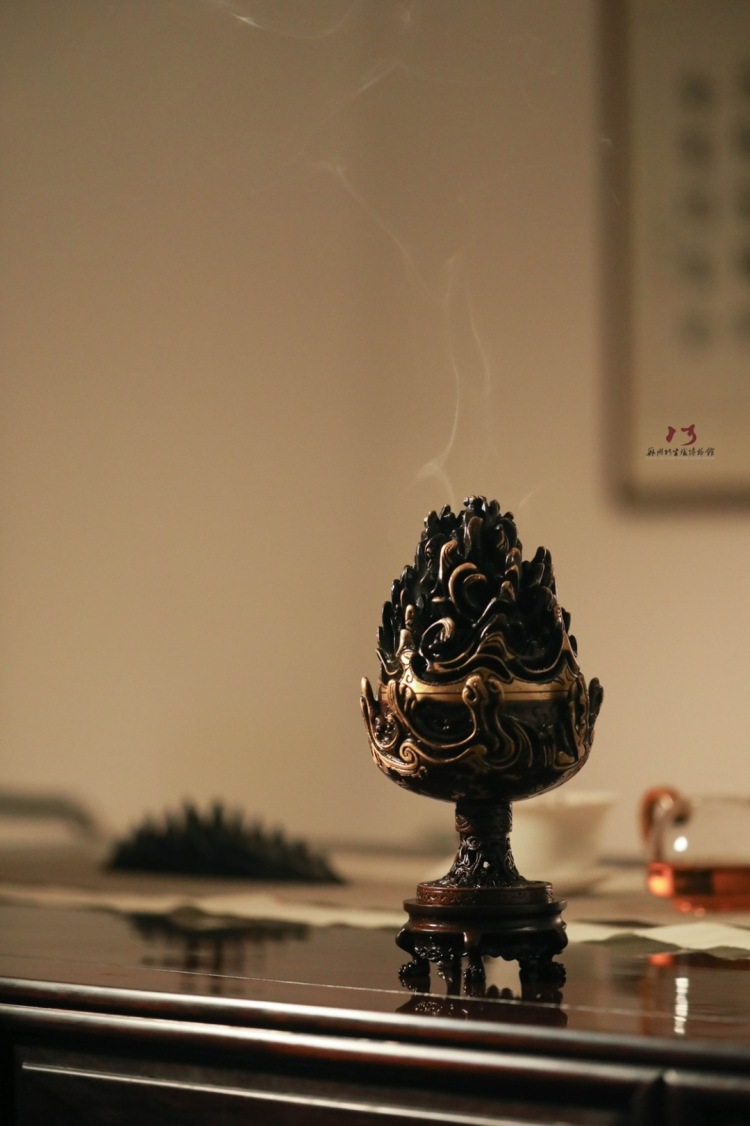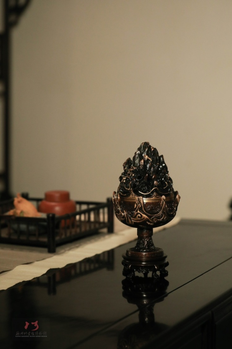 陈巧生制 c067仿汉带座描金博山炉 铜炉香炉摆件