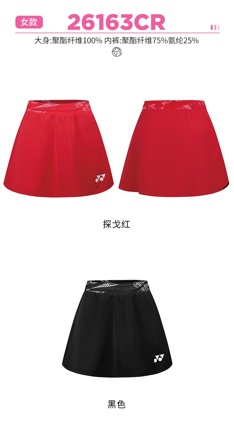 尤尼克斯 女款 国家队球迷服 运动短裙 26163CR