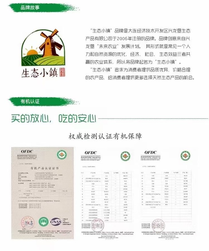 生态小镇的有机豆子,产地均来自东北的黑土地,自然天成,远离污染,一年只耕种一季,作物生长期长,成就了有机豆的天然品质。由于产区水源充足,昼夜温差大,光照充足,土壤肥沃,每一颗豆子都颗粒饱满,整齐均匀。生态小镇的有机作物都是采用天然种子种植而成,没有经过人工加工,在种植过程中也不使用任何农药、化肥和除草剂等化学物质,只使用从生物肥料中提取出的天然成分,没有任何人工合成添加剂,保证质量的同时还保证了安全性,吃起来非常安心!