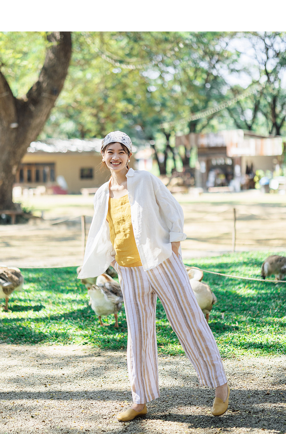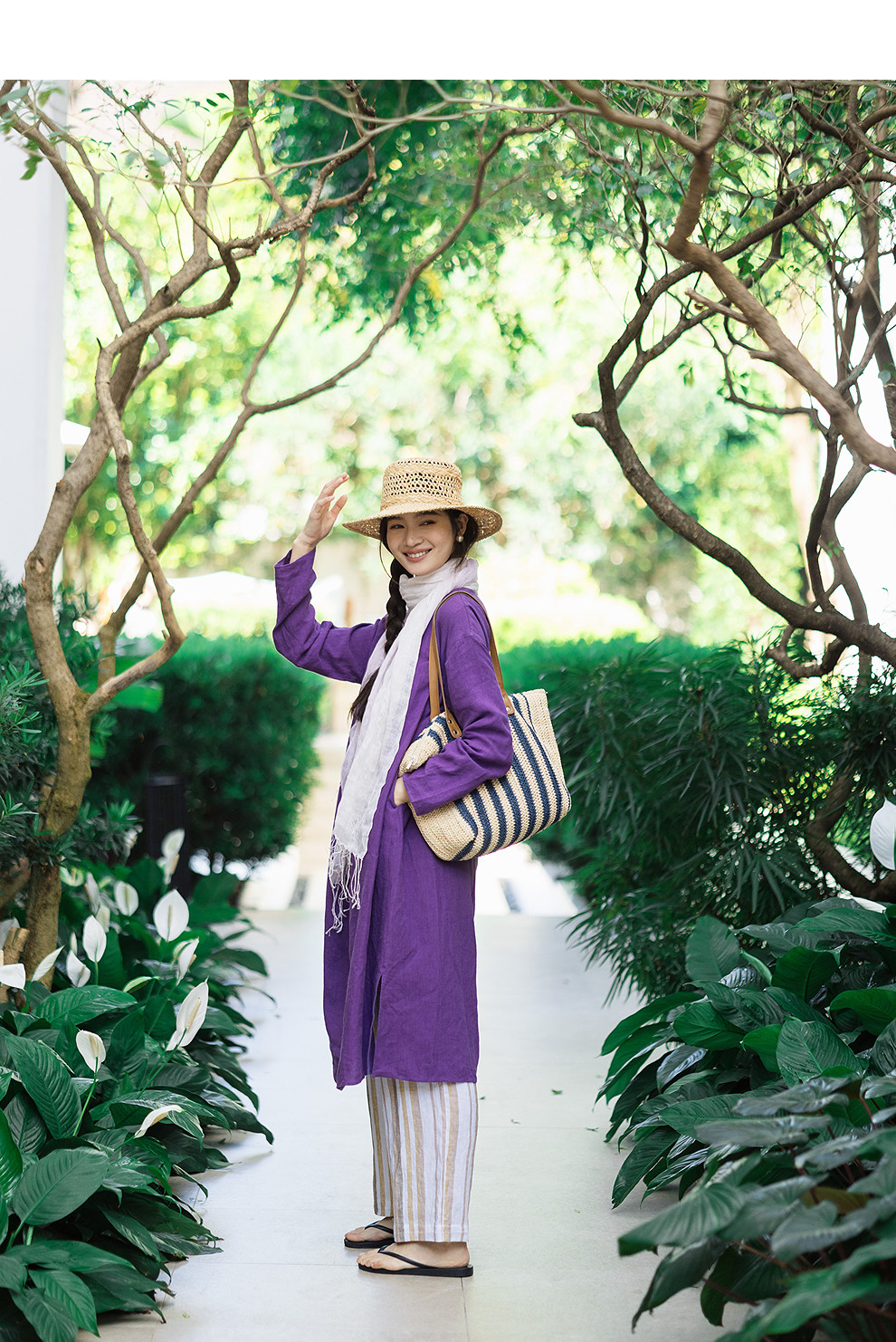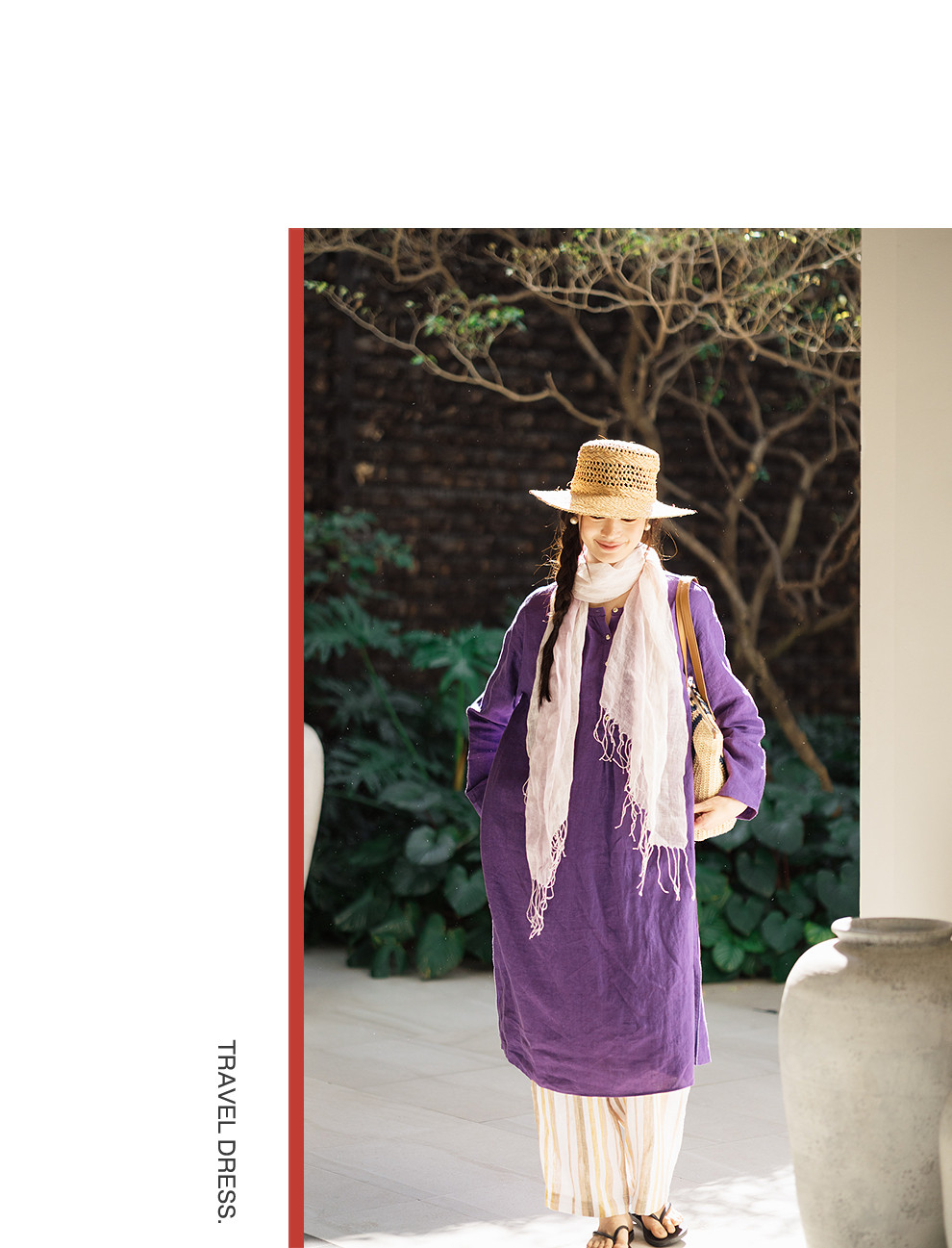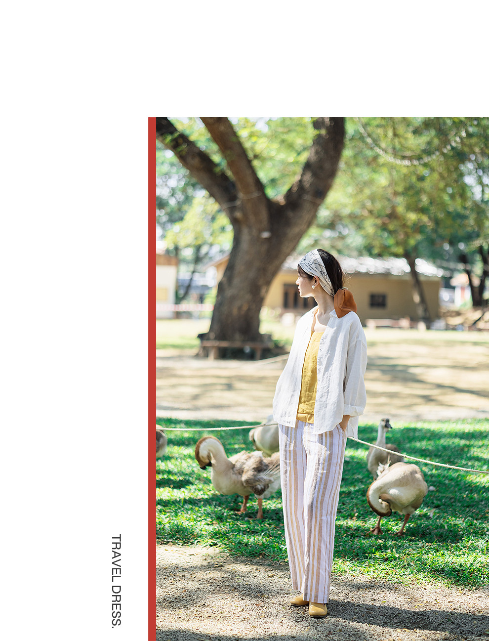 以天然亚麻为载体,融合热烈色彩与自在剪裁为身在城市、心怀远方的女性提供兼具美学与舒适的旅行着装