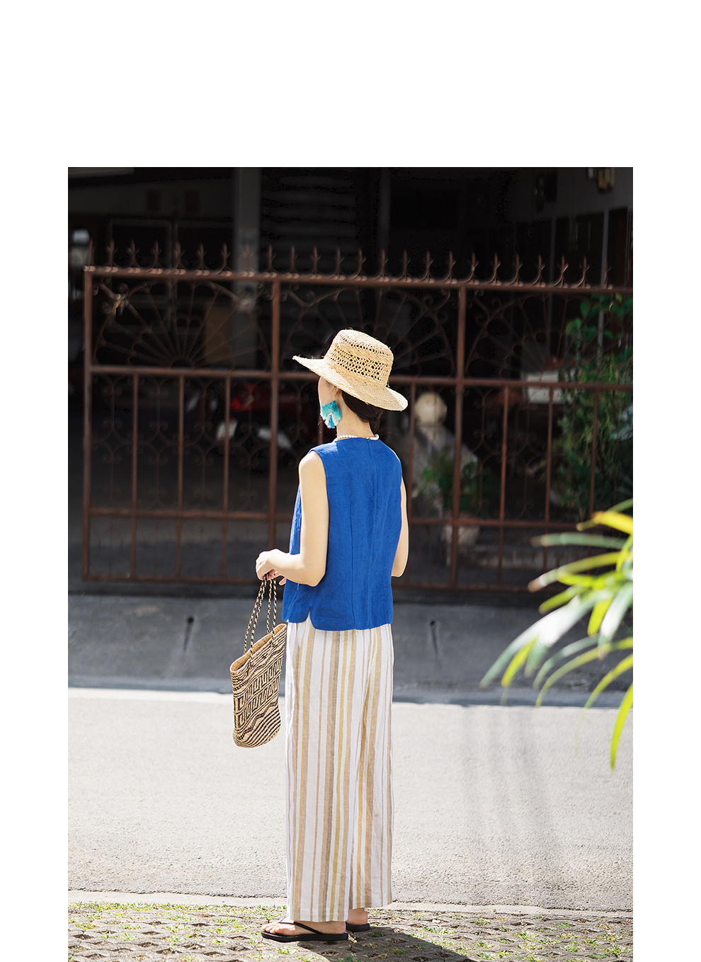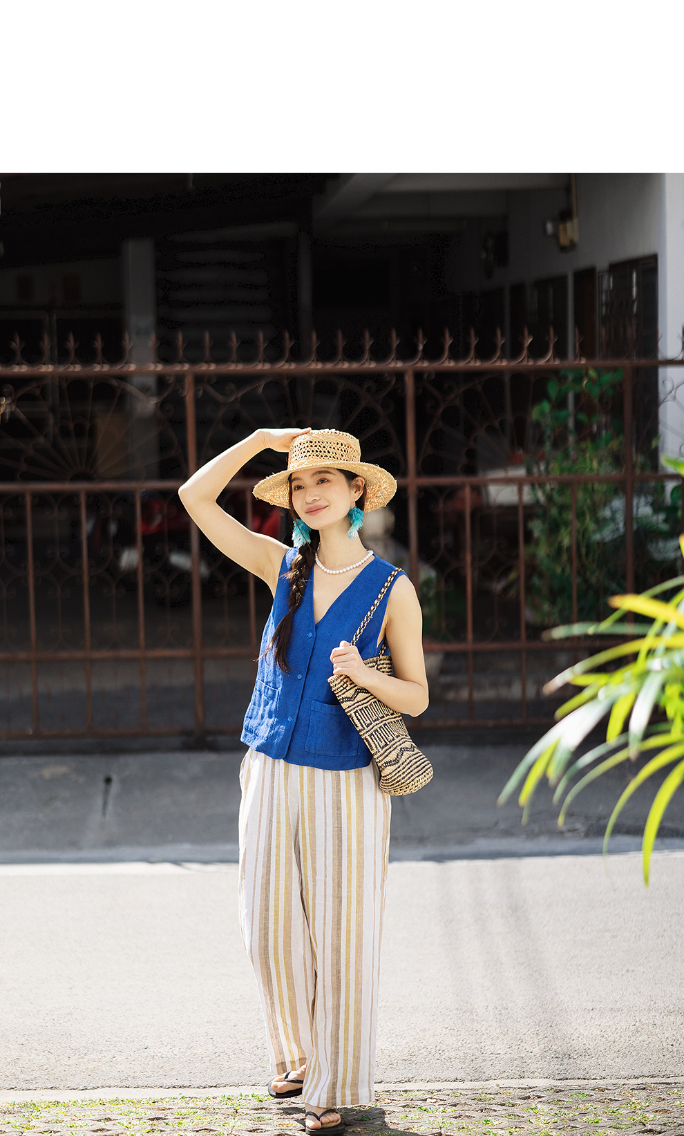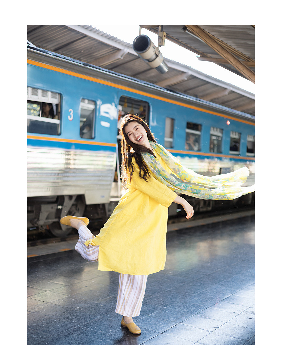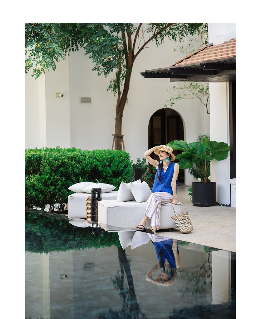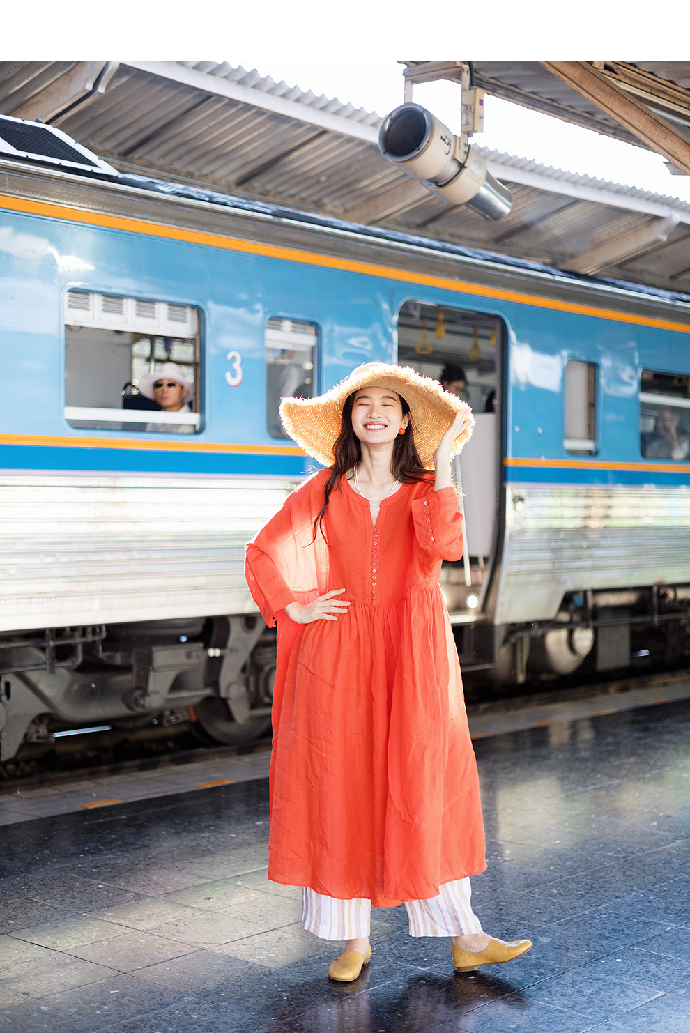 以天然亚麻为载体,融合热烈色彩与自在剪裁为身在城市、心怀远方的女性提供兼具美学与舒适的旅行着装