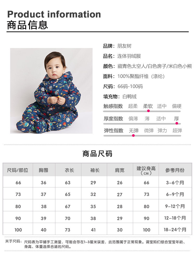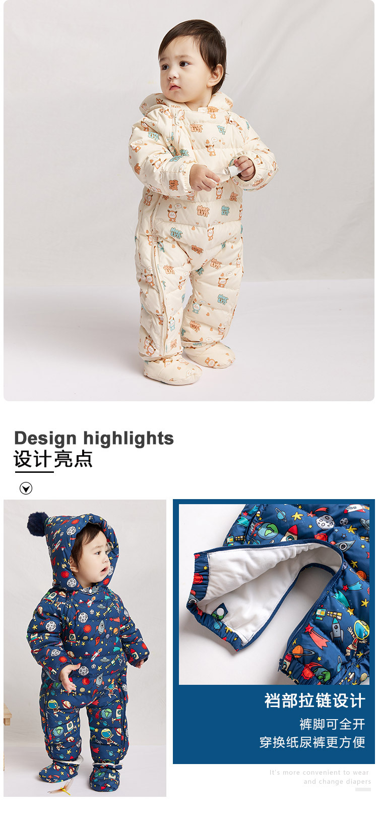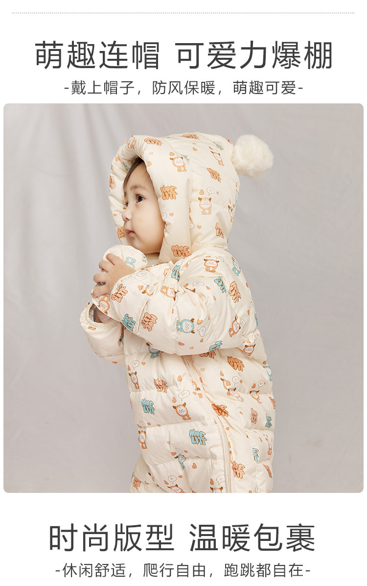 【婴儿羽绒连体衣】宝宝加厚女婴抱衣 新生儿爬服网红包屁衣童装
