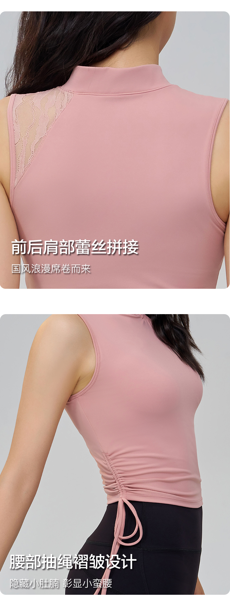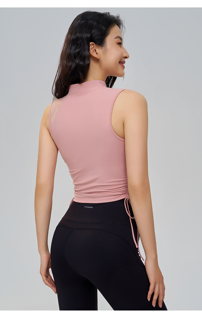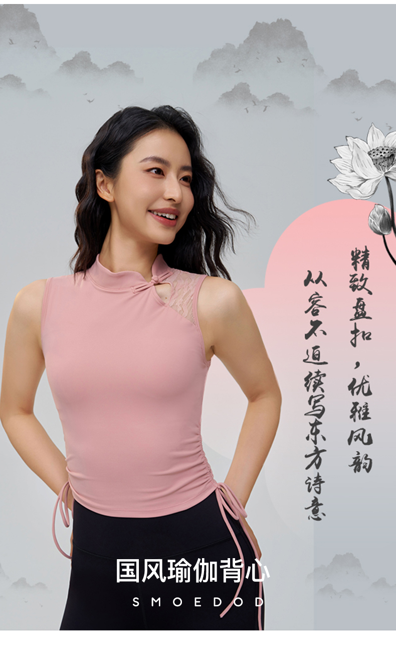 SMOEDOD/水沐伊朵国风瑜伽背心女手工盘口蕾丝拼接时尚百搭50036