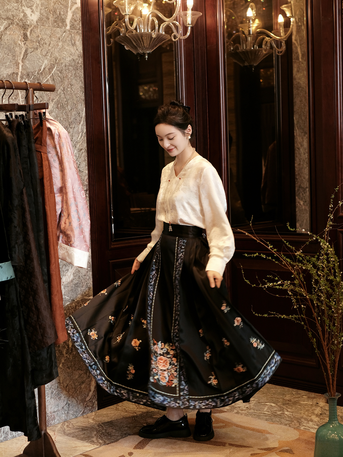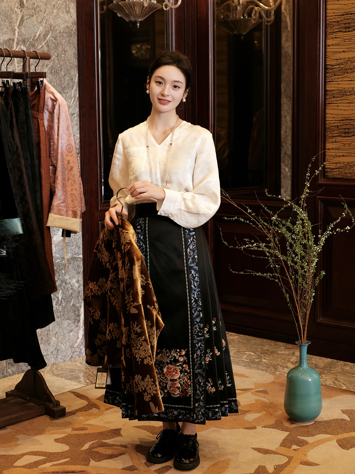 盛唐牡丹 |高货限量款 重缎真丝三蓝绣马面裙 [特价品]