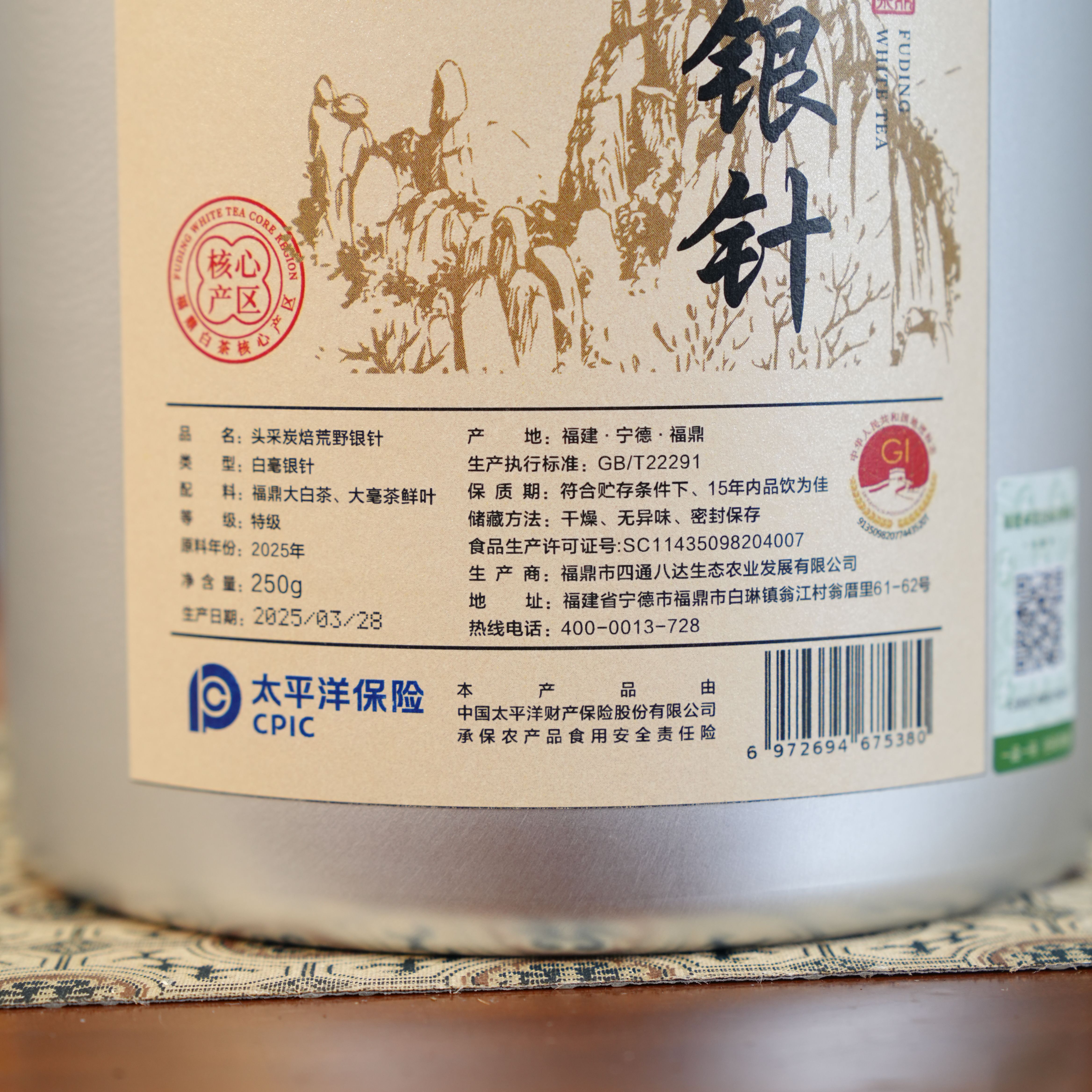 茶马世家福鼎太姥山特级碳焙荒野银针花香水甜白毫银针罐装250g