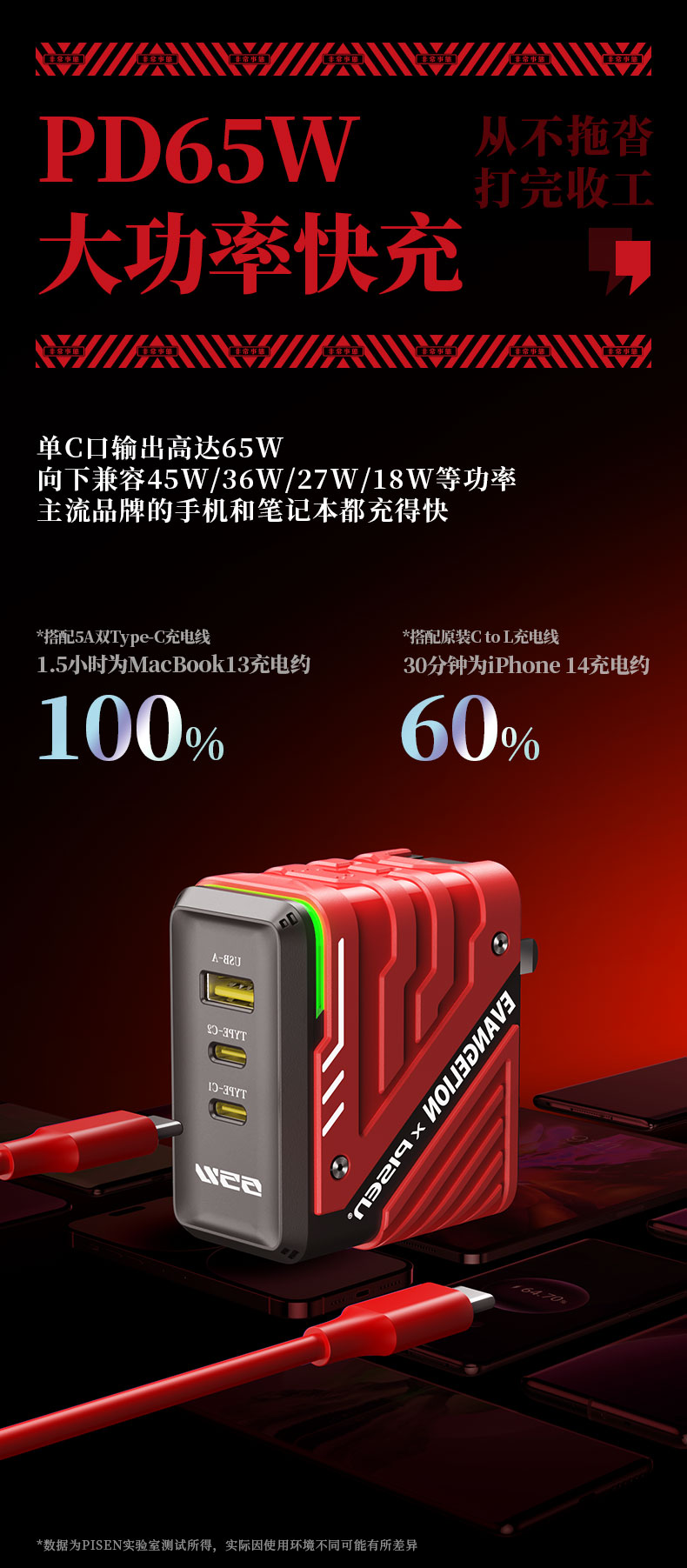 品胜 新世纪福音战士EVA联名 EVA机甲充电器套装 支持65W笔记本快充 华为超级快充