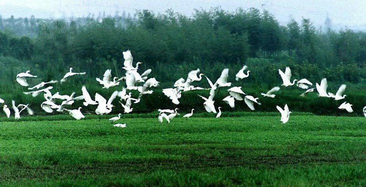 下诸湖的鸟岛是国家级保护动物—朱鹮的栖息地,因优质的水质、空气和生态环境,成百上千的白鹭在这里起飞与降落,呈现与一片人与自然和谐相处之景