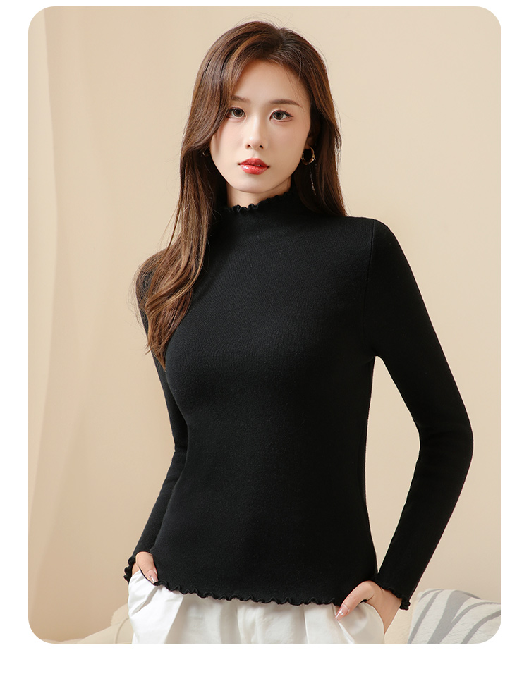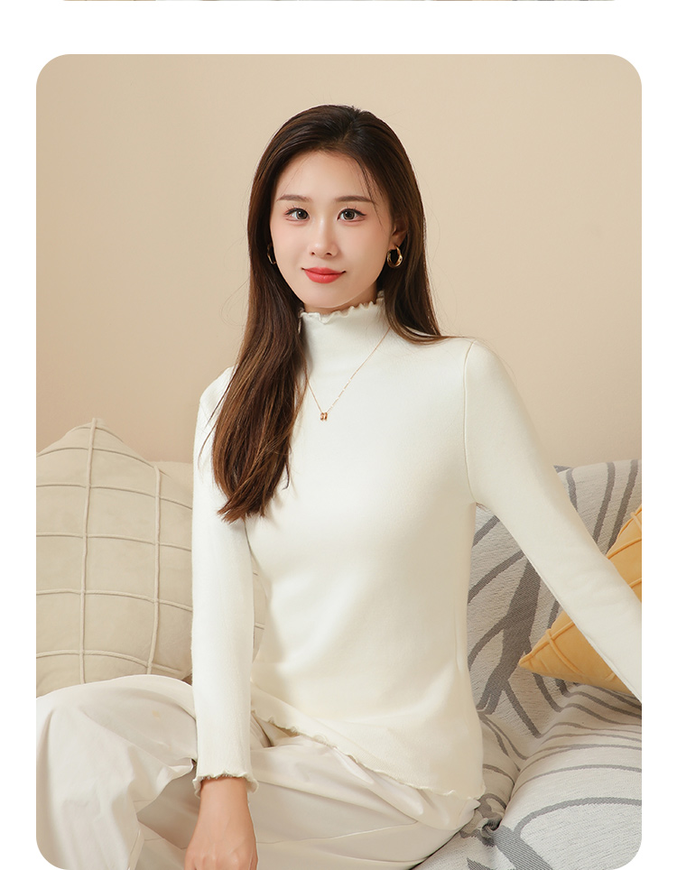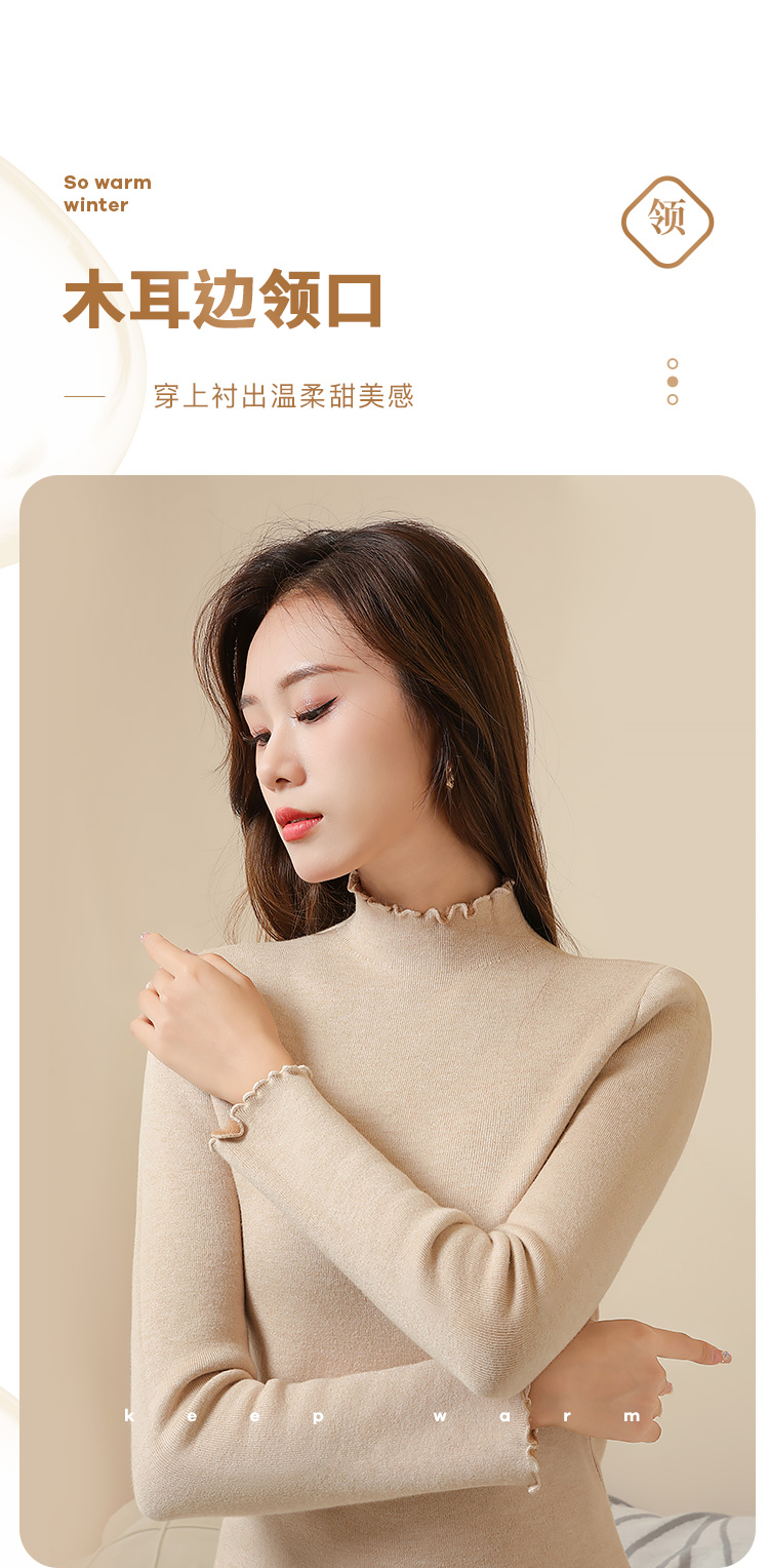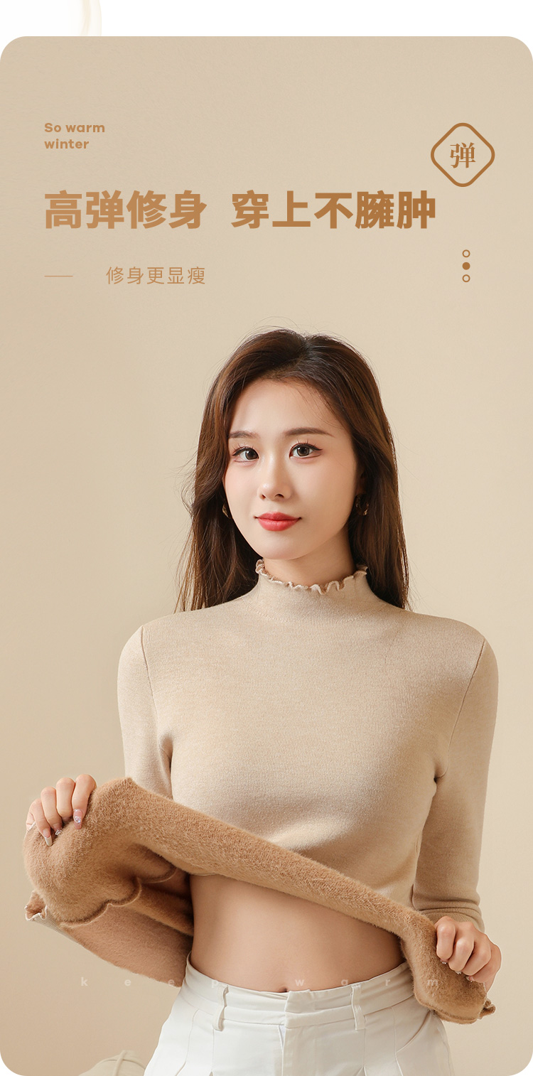 【加绒加厚半高领】女士打底衫内搭秋冬修身一体绒木耳加绒打底衫