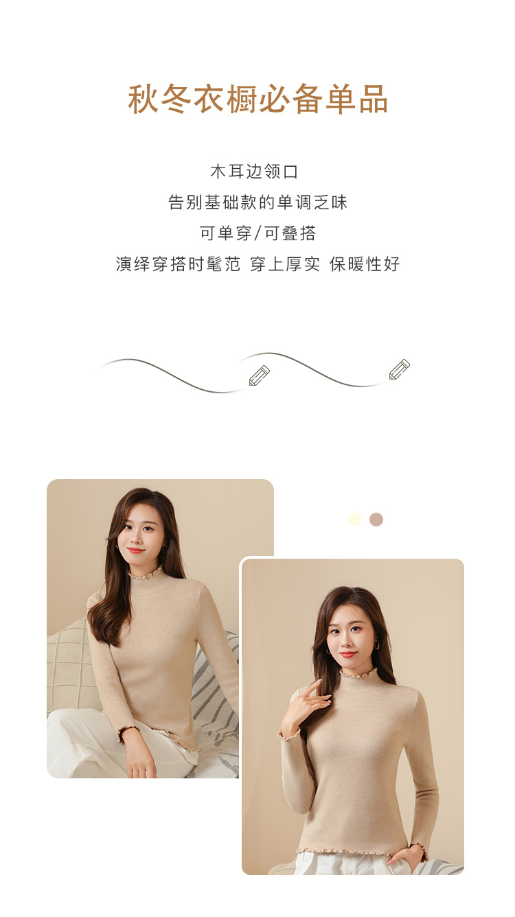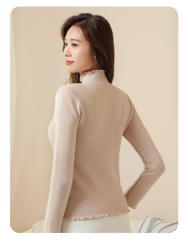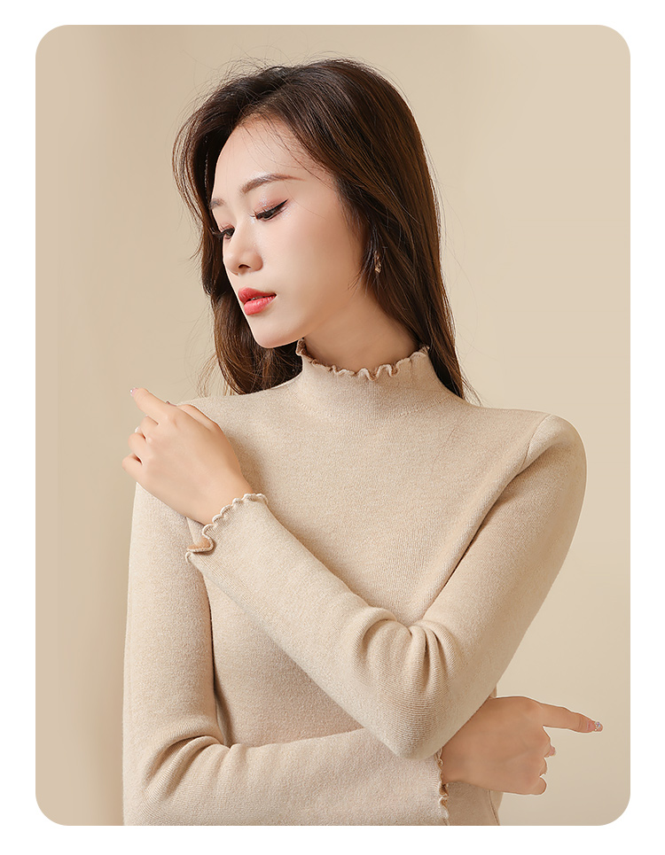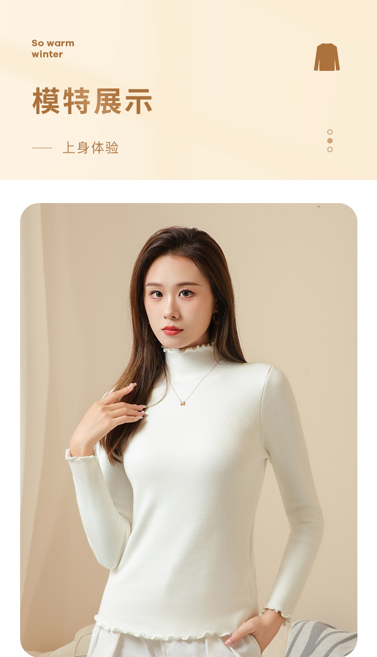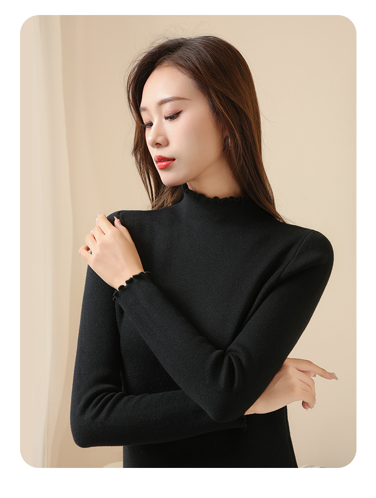 【加绒加厚半高领】女士打底衫内搭秋冬修身一体绒木耳加绒打底衫