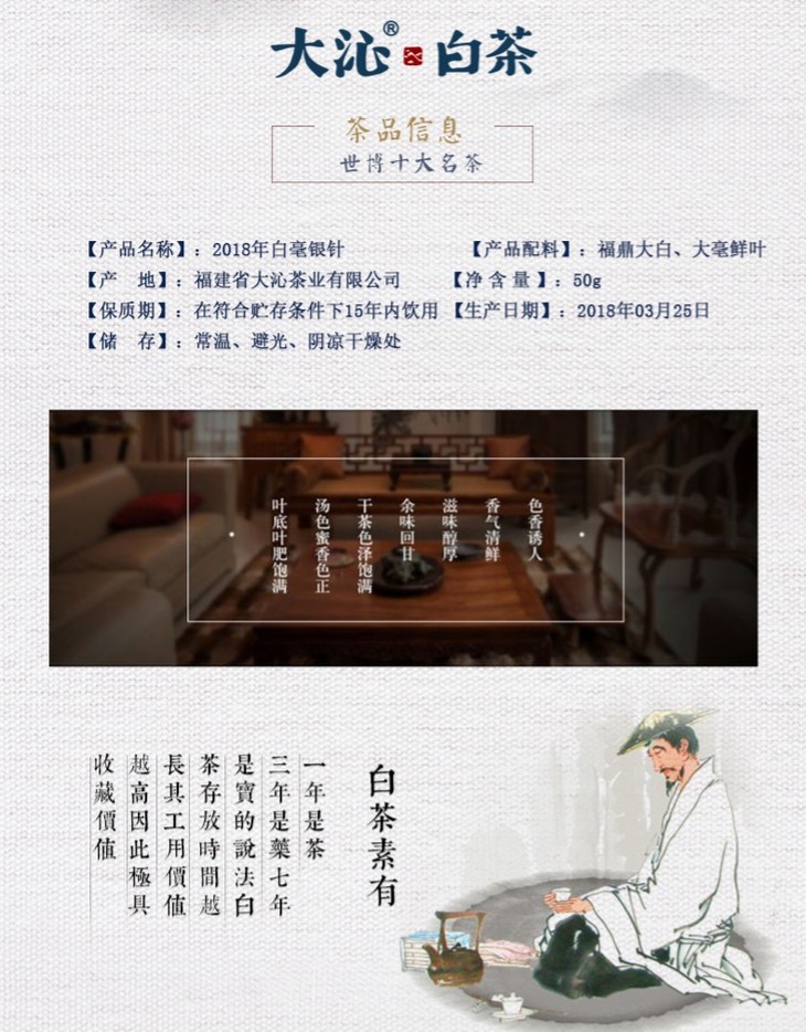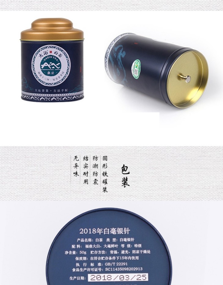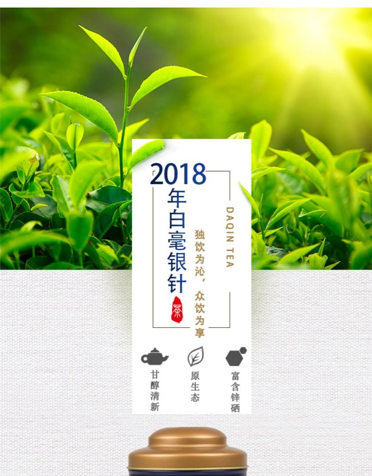 大沁2018年明前特级白毫银针50g罐装