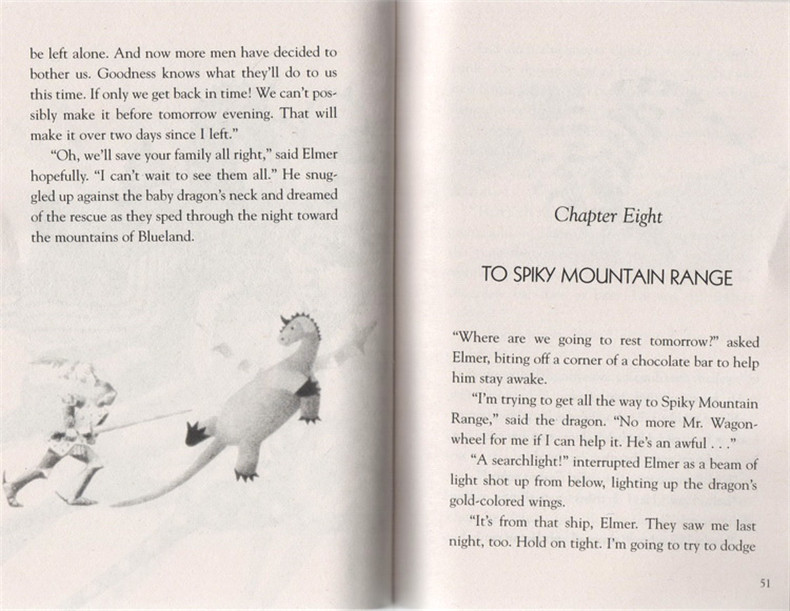 “这是一本让人开心的书——文字、装帧、有趣的黑白插图,讲述了一个小男孩从野兽横行的小岛上解救受虐待的小飞龙的故事。”——《纽约客》