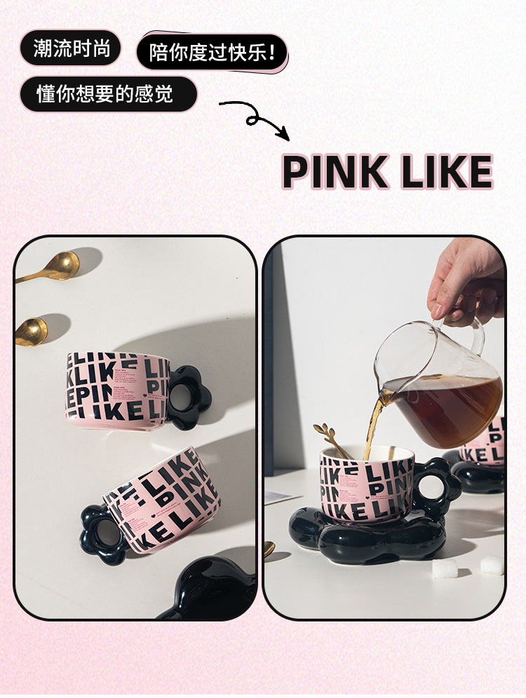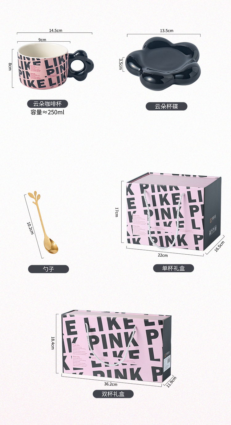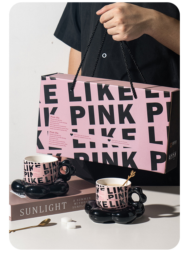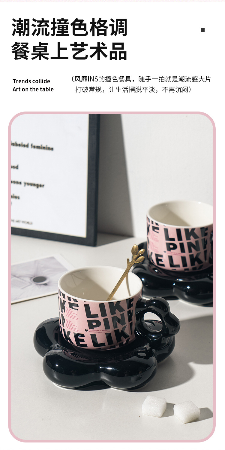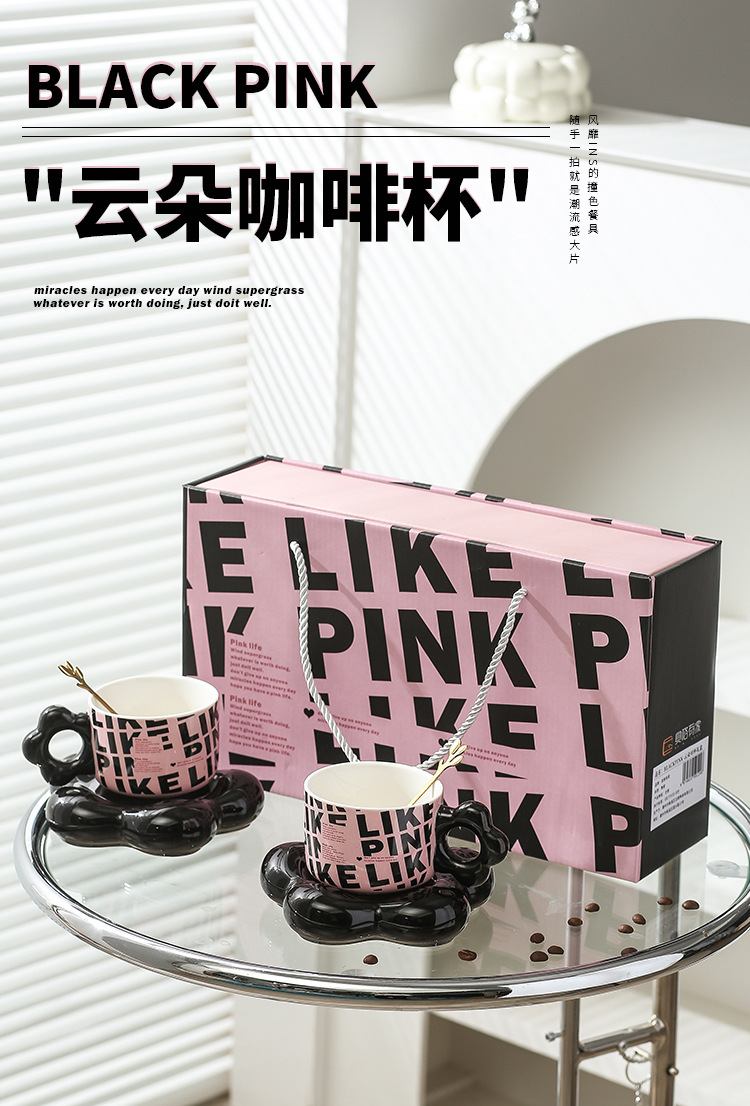 【BLACK PINK云朵咖啡杯】套装好看家用精致漂亮陶瓷杯子ins风黑色马克杯