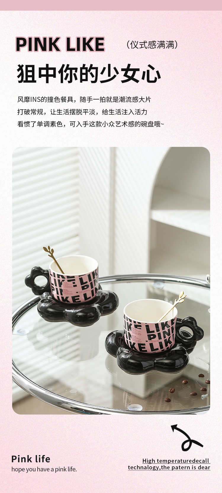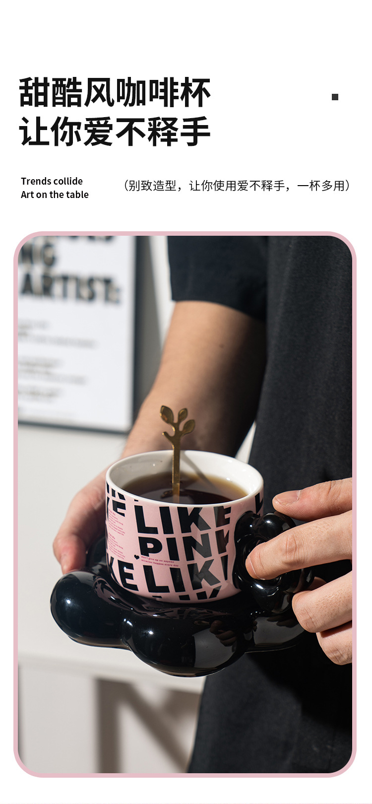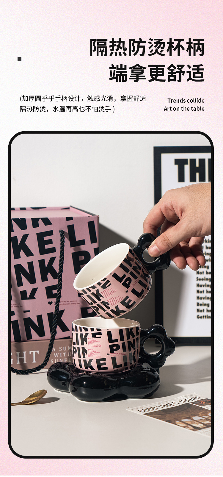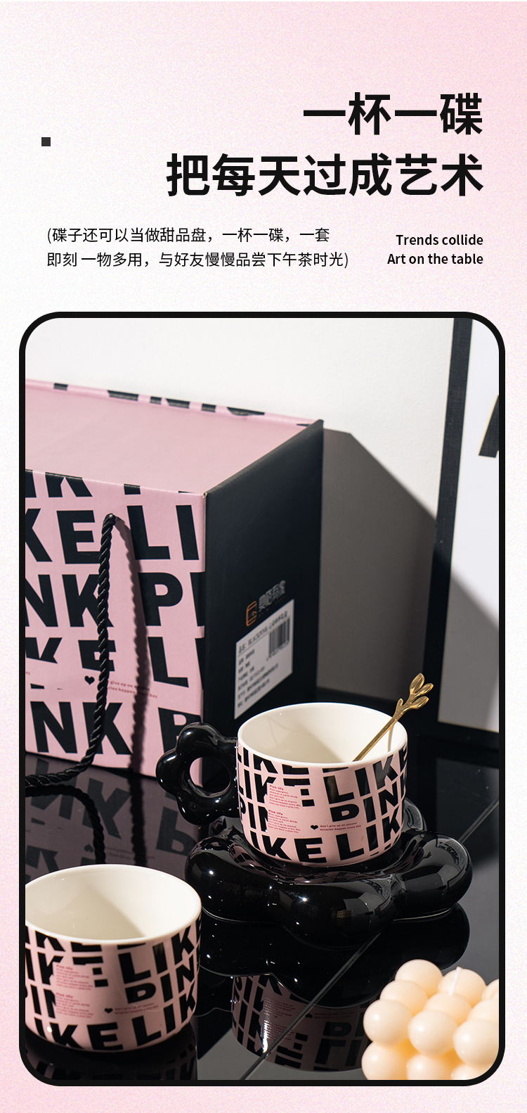 【BLACK PINK云朵咖啡杯】套装好看家用精致漂亮陶瓷杯子ins风黑色马克杯
