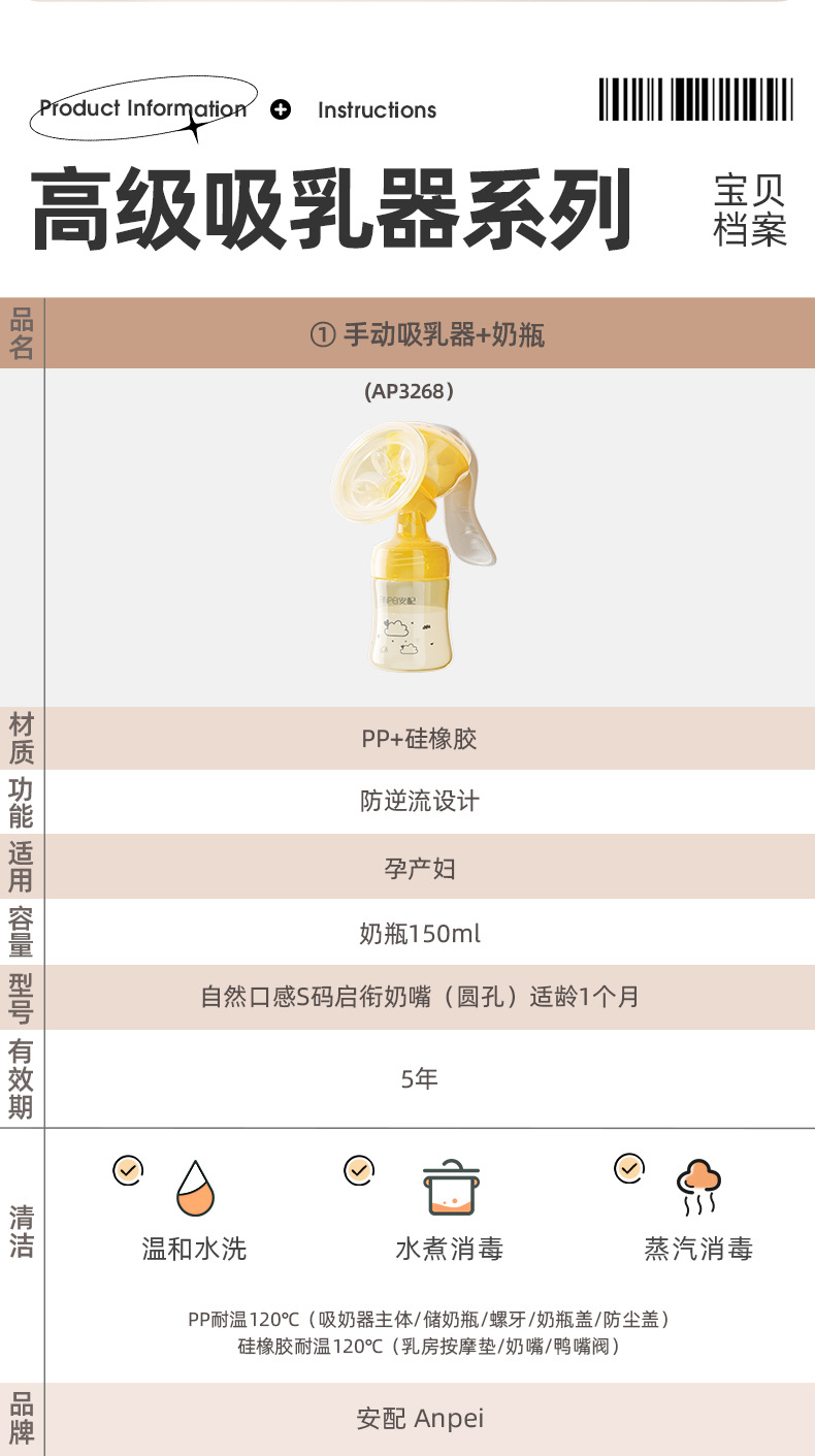 【您温柔的御用“催乳师”】安配手动吸奶器吸力大产后手动式母乳集乳奶器按摩便携静音挤奶器