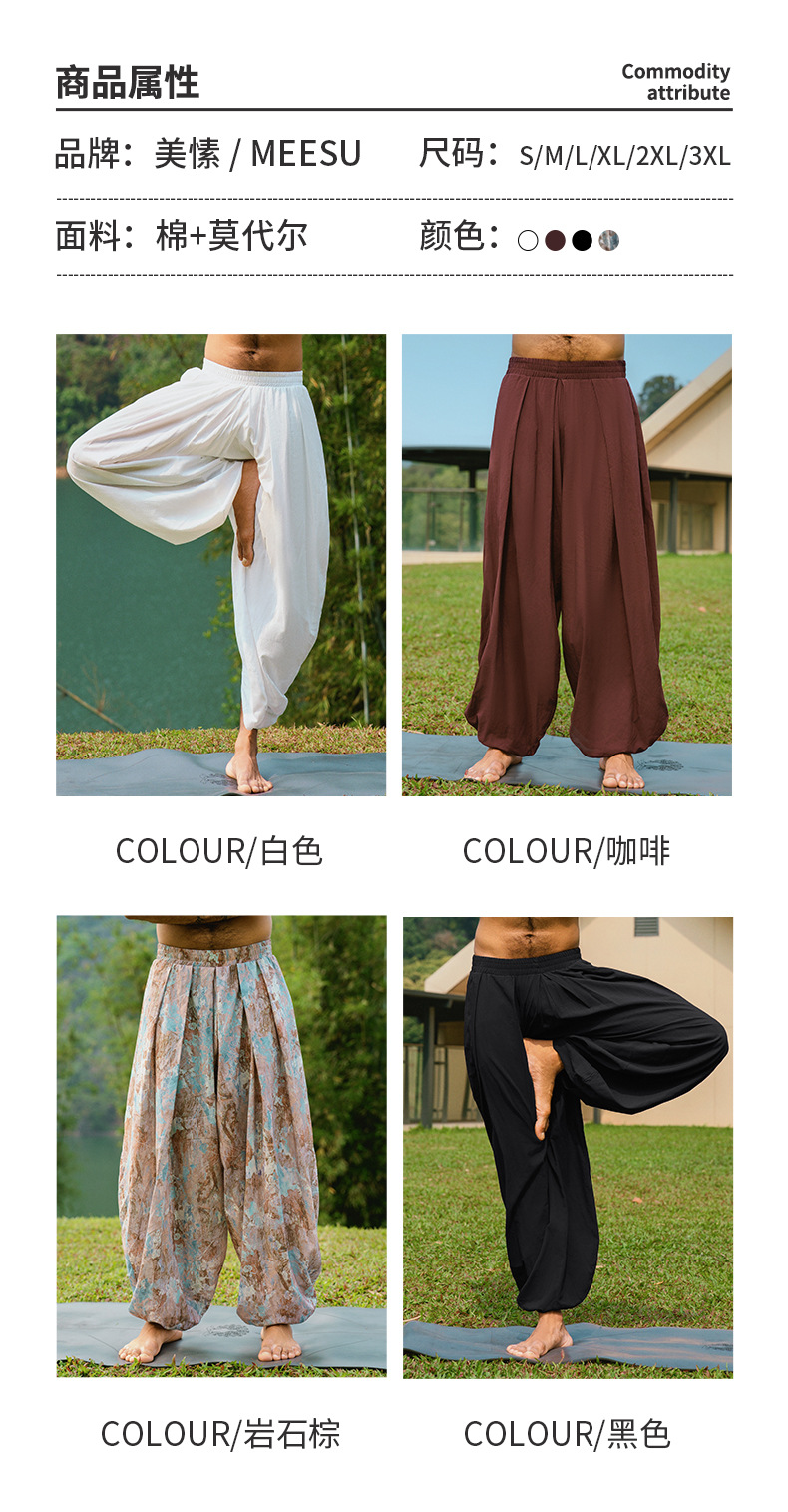 美愫男士瑜伽裤宽松灯笼裤民族风时尚高腰轻薄禅修打坐冥想舞蹈裤