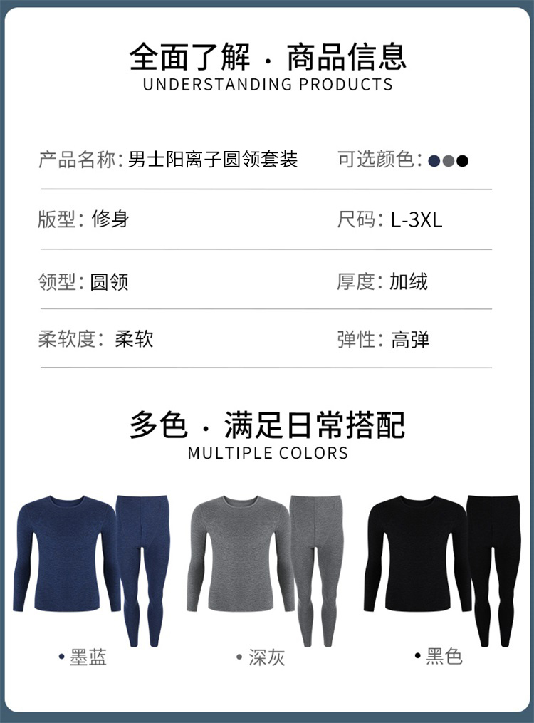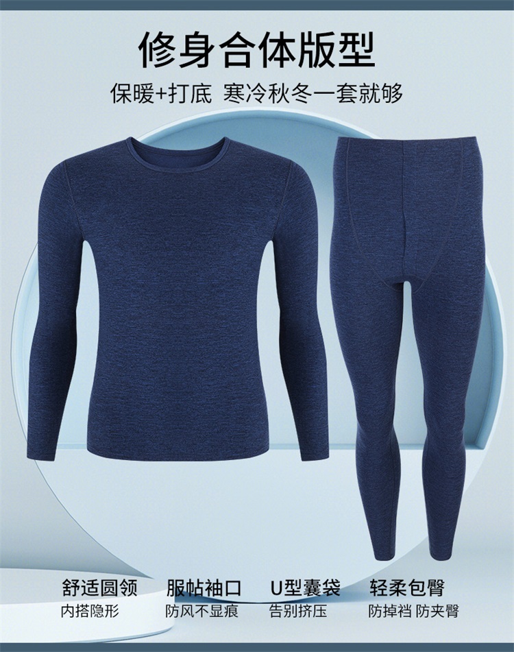 雅黛丽秋衣秋裤男士套装加绒亲肤大码保暖内衣秋冬季圆领打底衣男