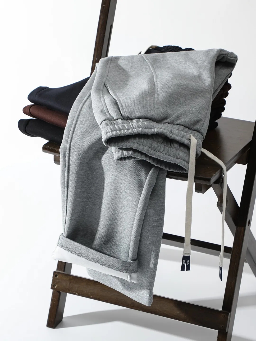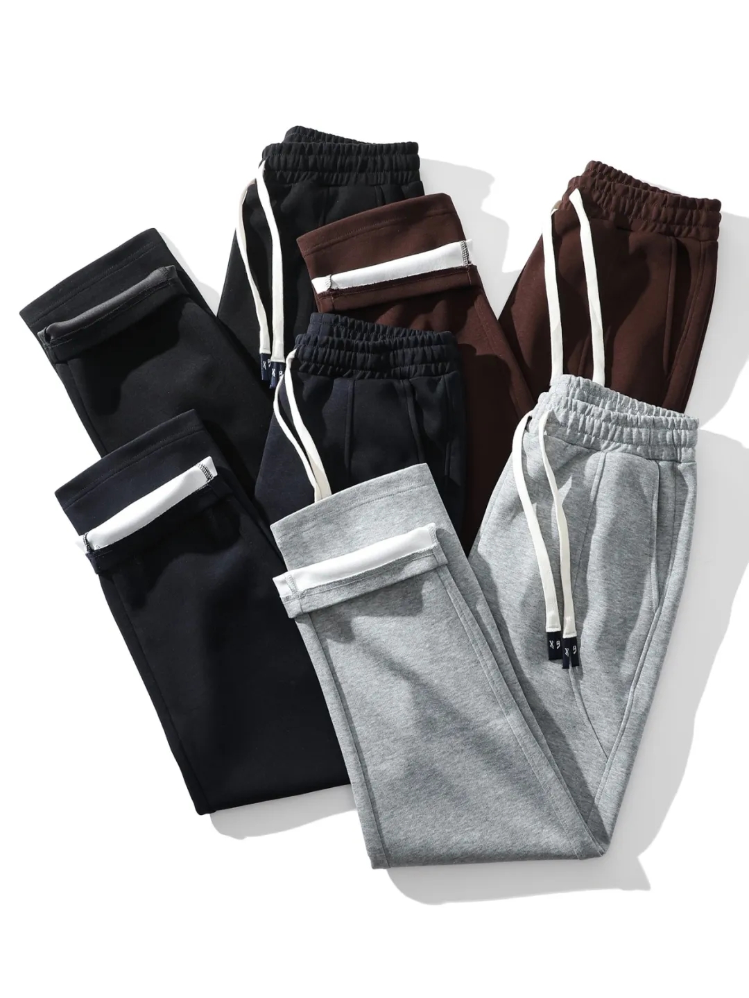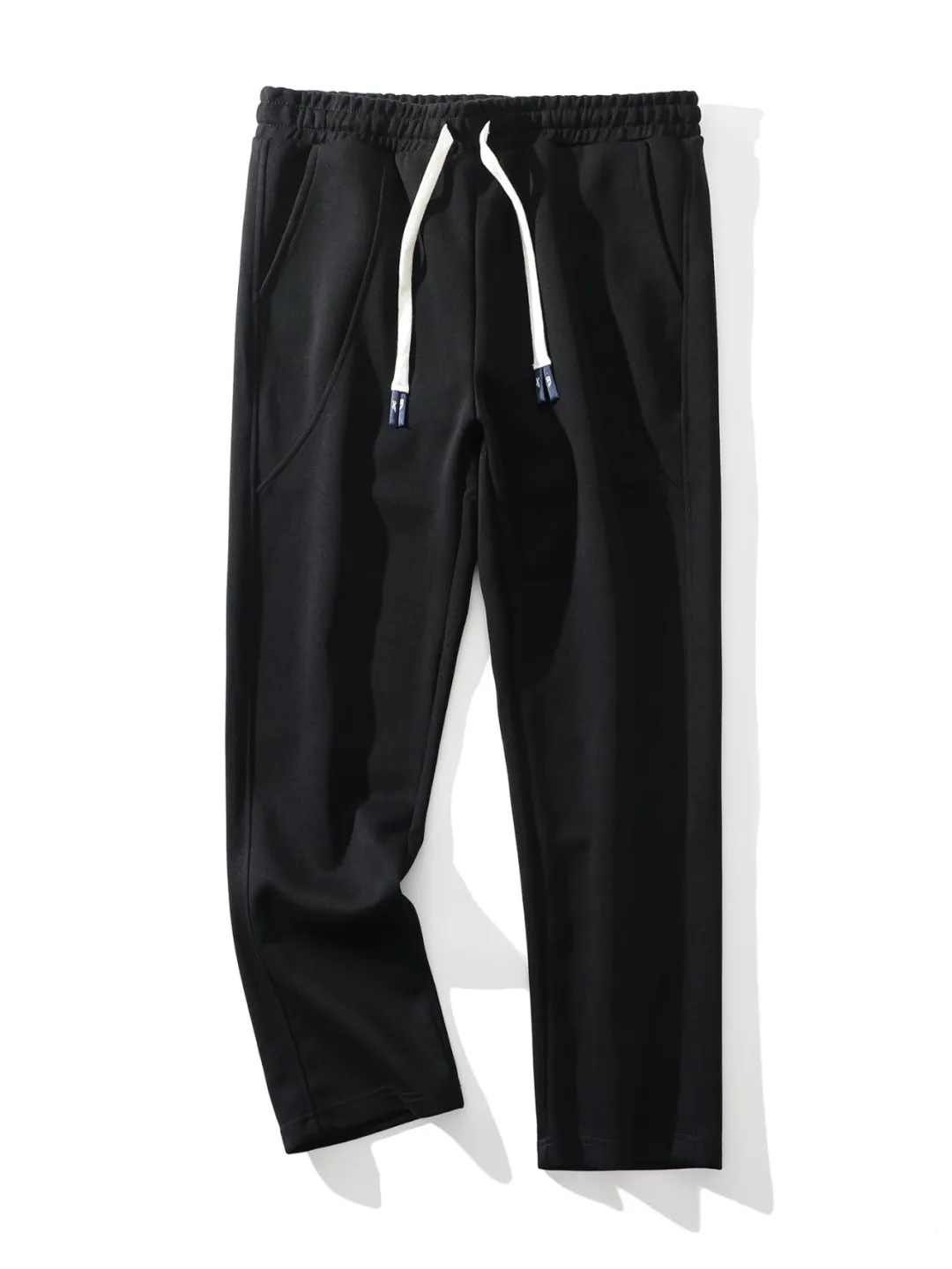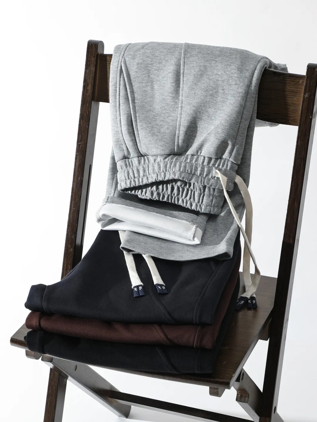 F030602慕冬绒复合牛奶丝棉纯色抽绳松紧腰休闲裤拼接设计直口裤脚运动卫裤
