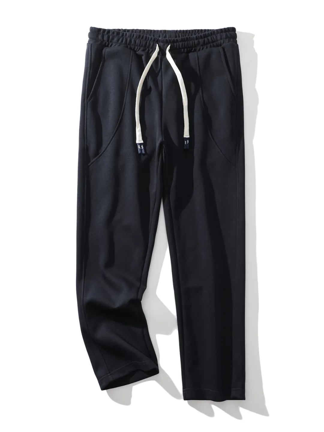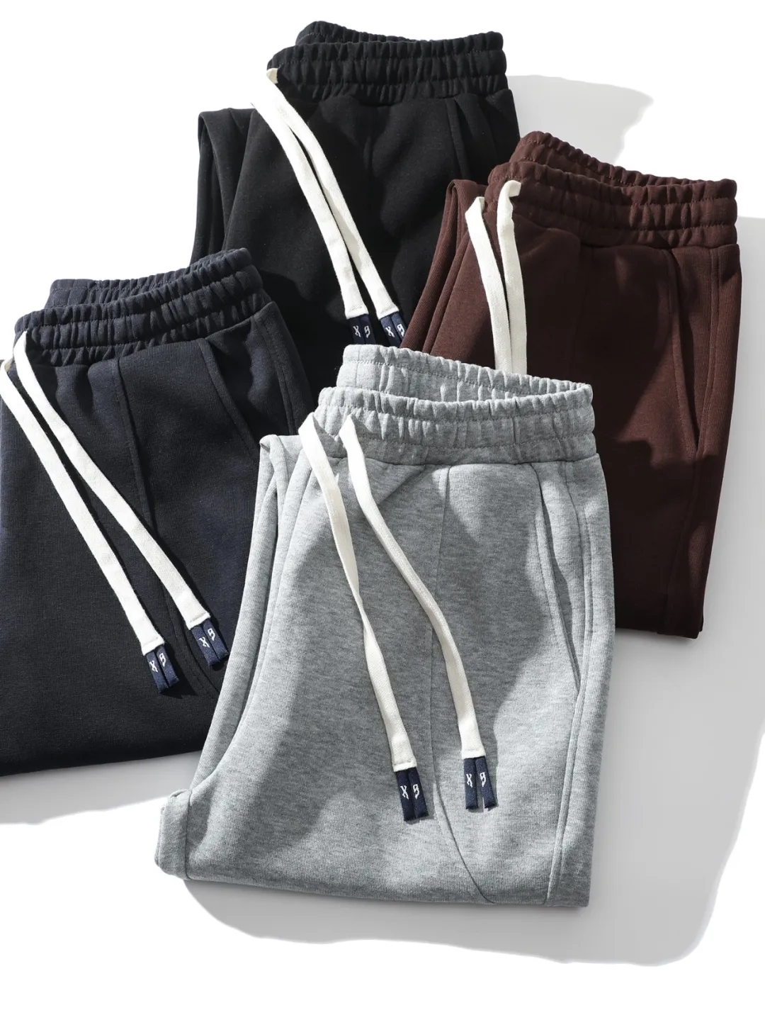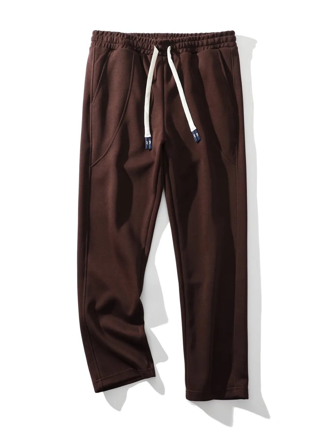 F030602慕冬绒复合牛奶丝棉纯色抽绳松紧腰休闲裤拼接设计直口裤脚运动卫裤