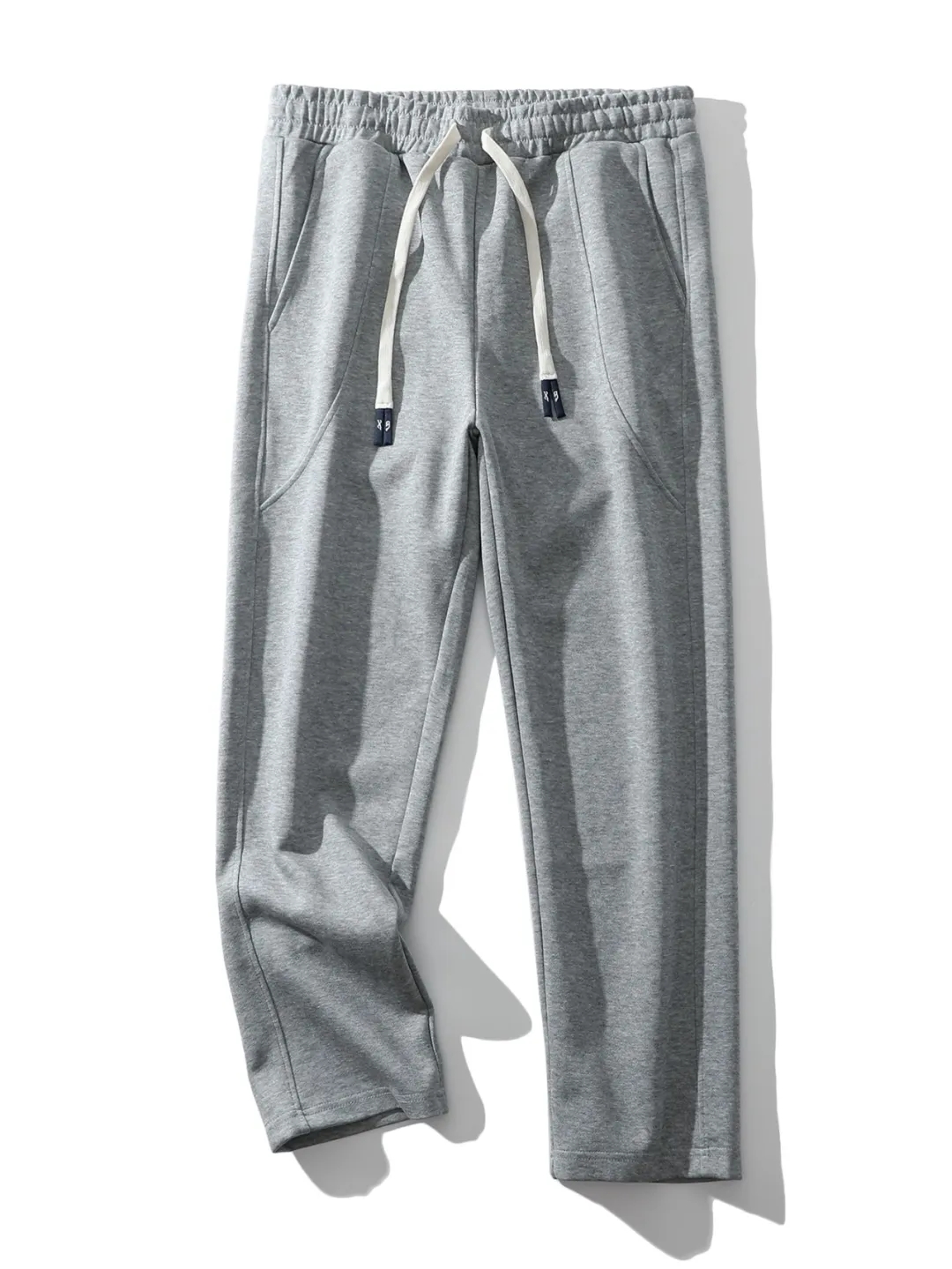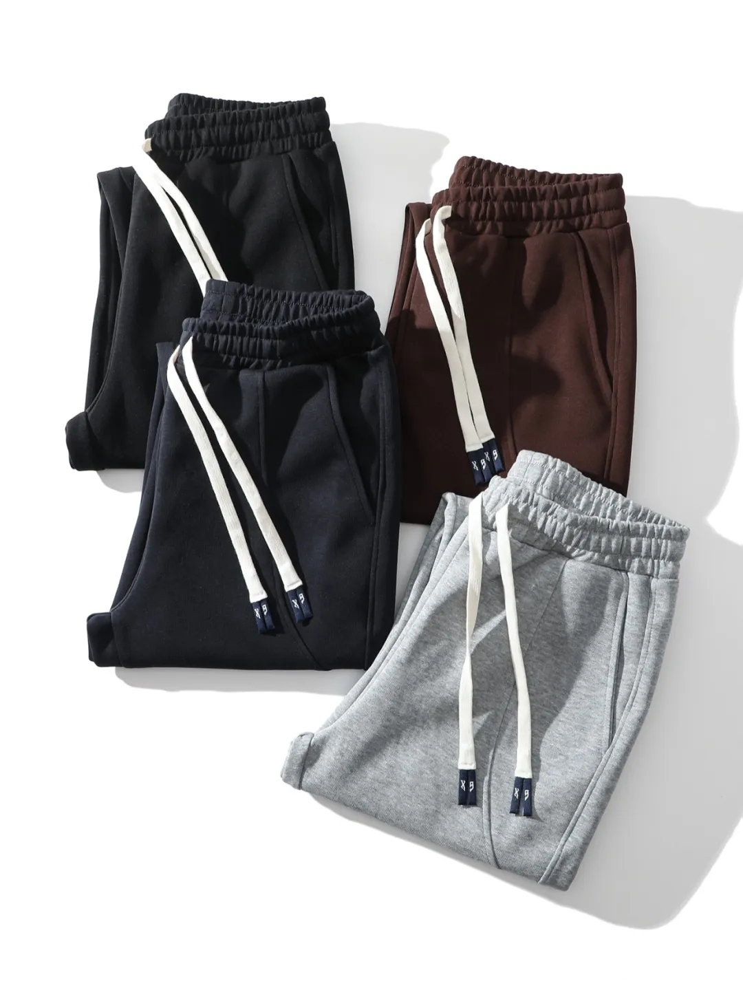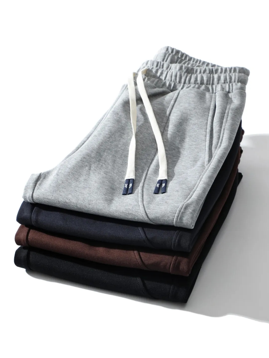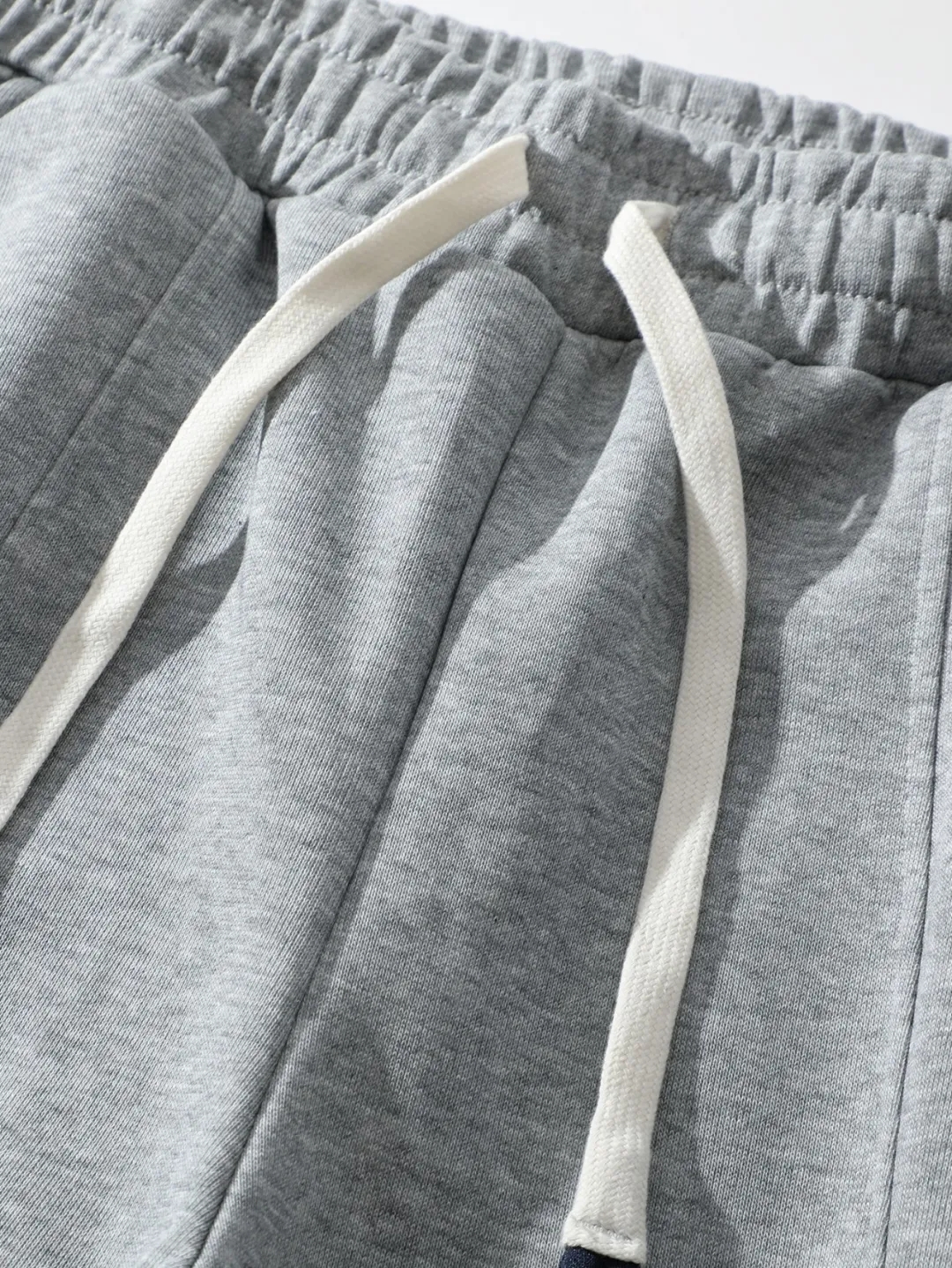 F030602慕冬绒复合牛奶丝棉纯色抽绳松紧腰休闲裤拼接设计直口裤脚运动卫裤
